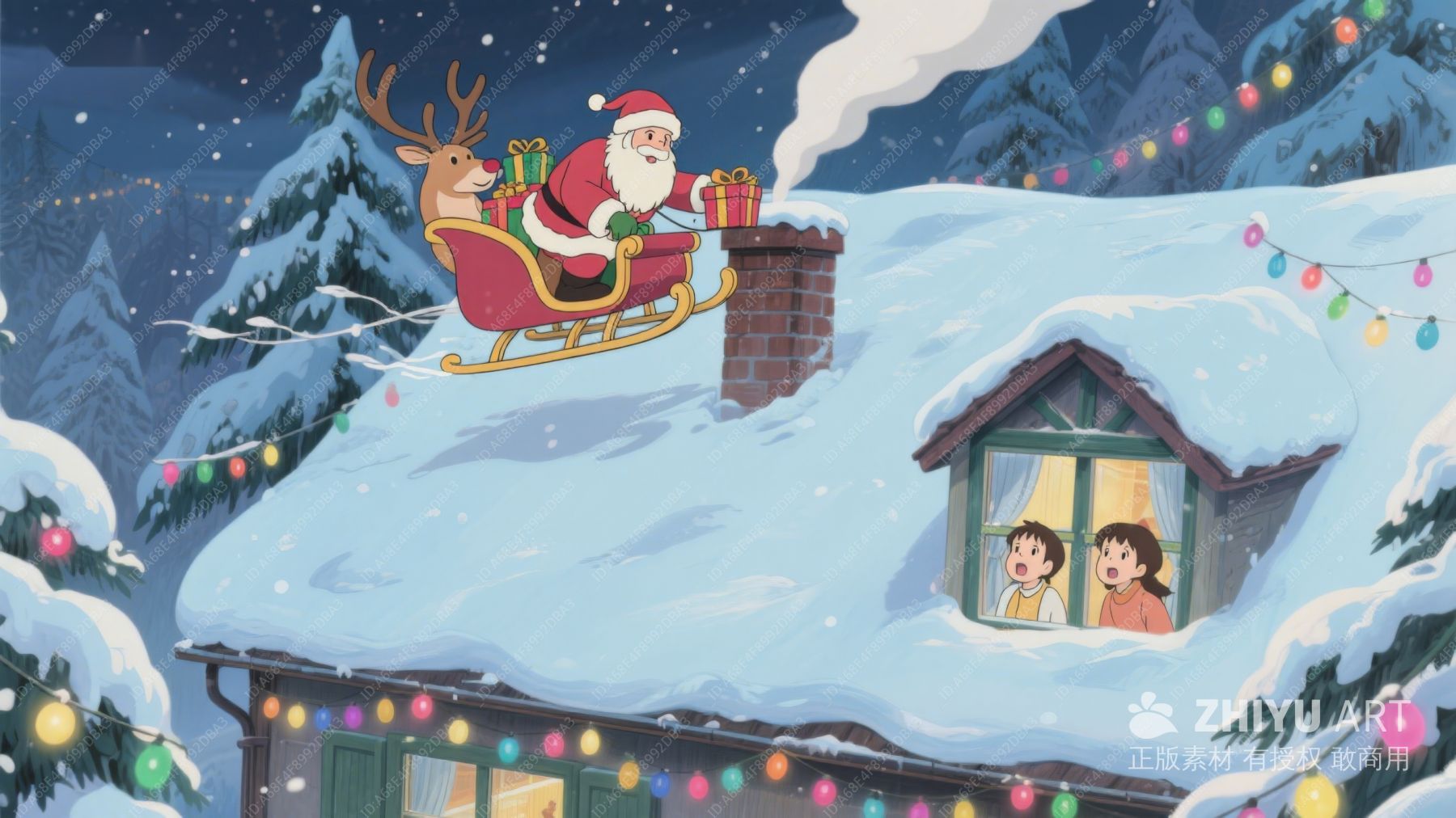 圣诞老人驾驯鹿飞过温馨小屋 176