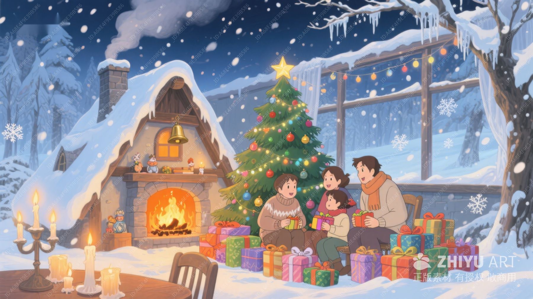 冬夜温馨家庭圣诞场景 74