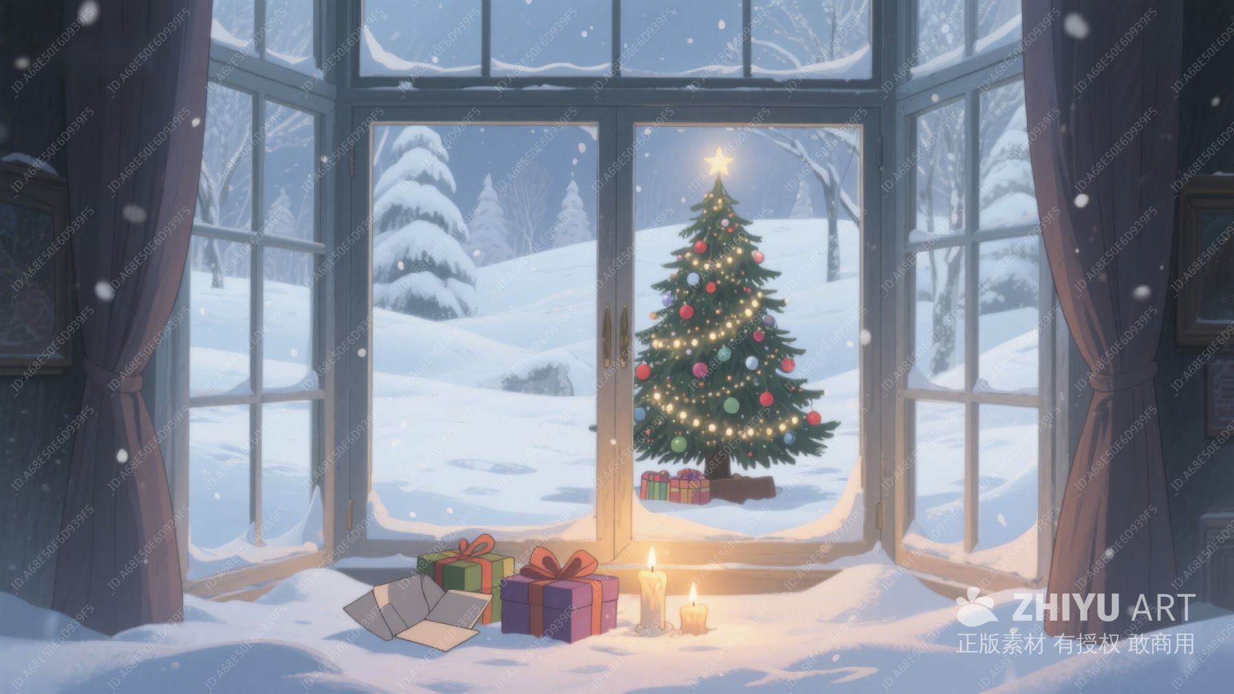 温馨圣诞夜,室内装饰与窗外雪景 324