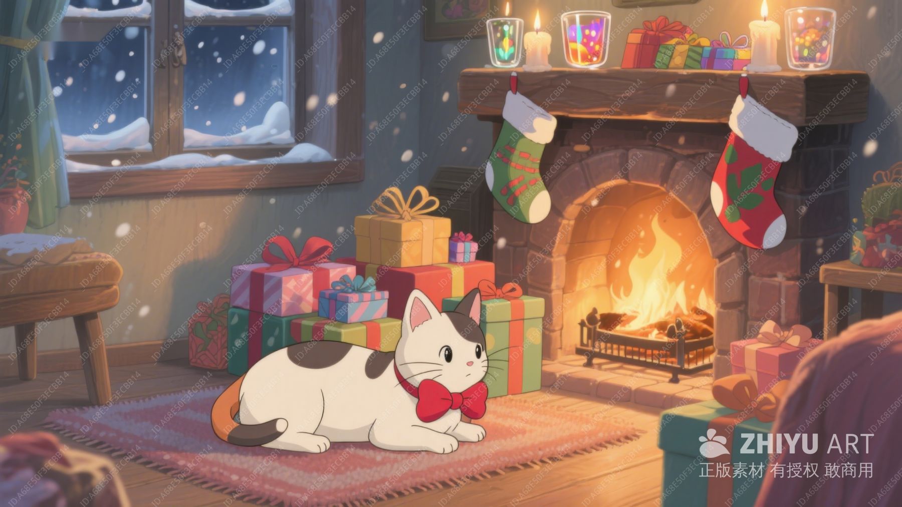 温馨圣诞夜,猫咪共度欢乐时光 302