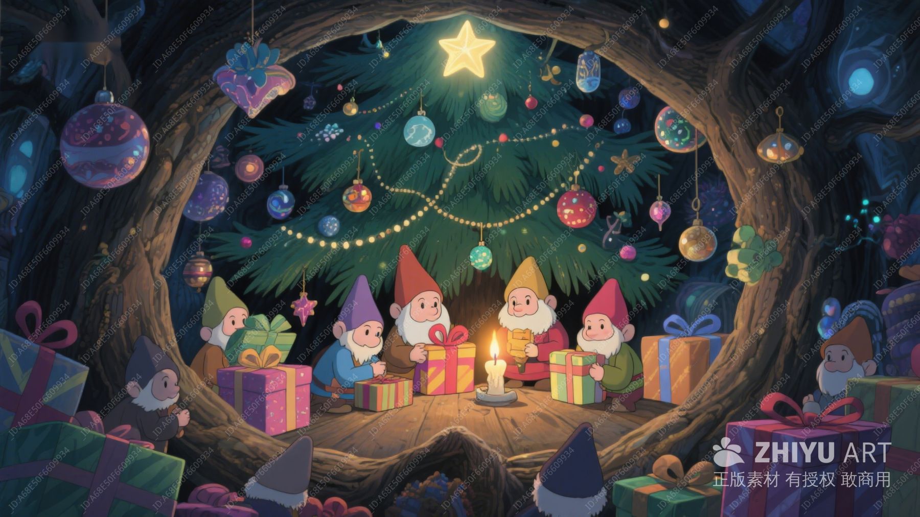 森林中的圣诞树与小矮人 166