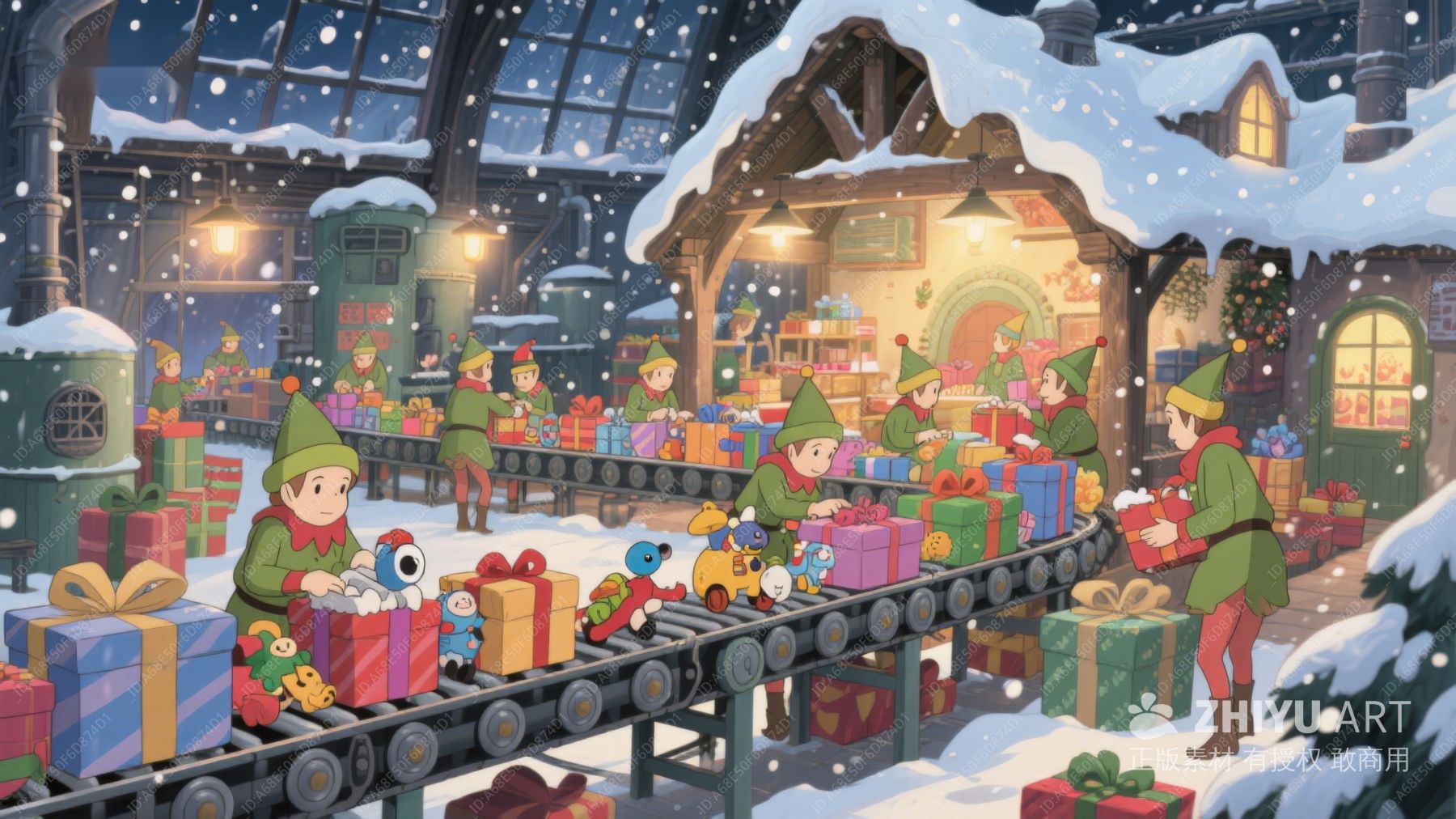 圣诞工厂夜景:精灵忙碌打包礼物 190