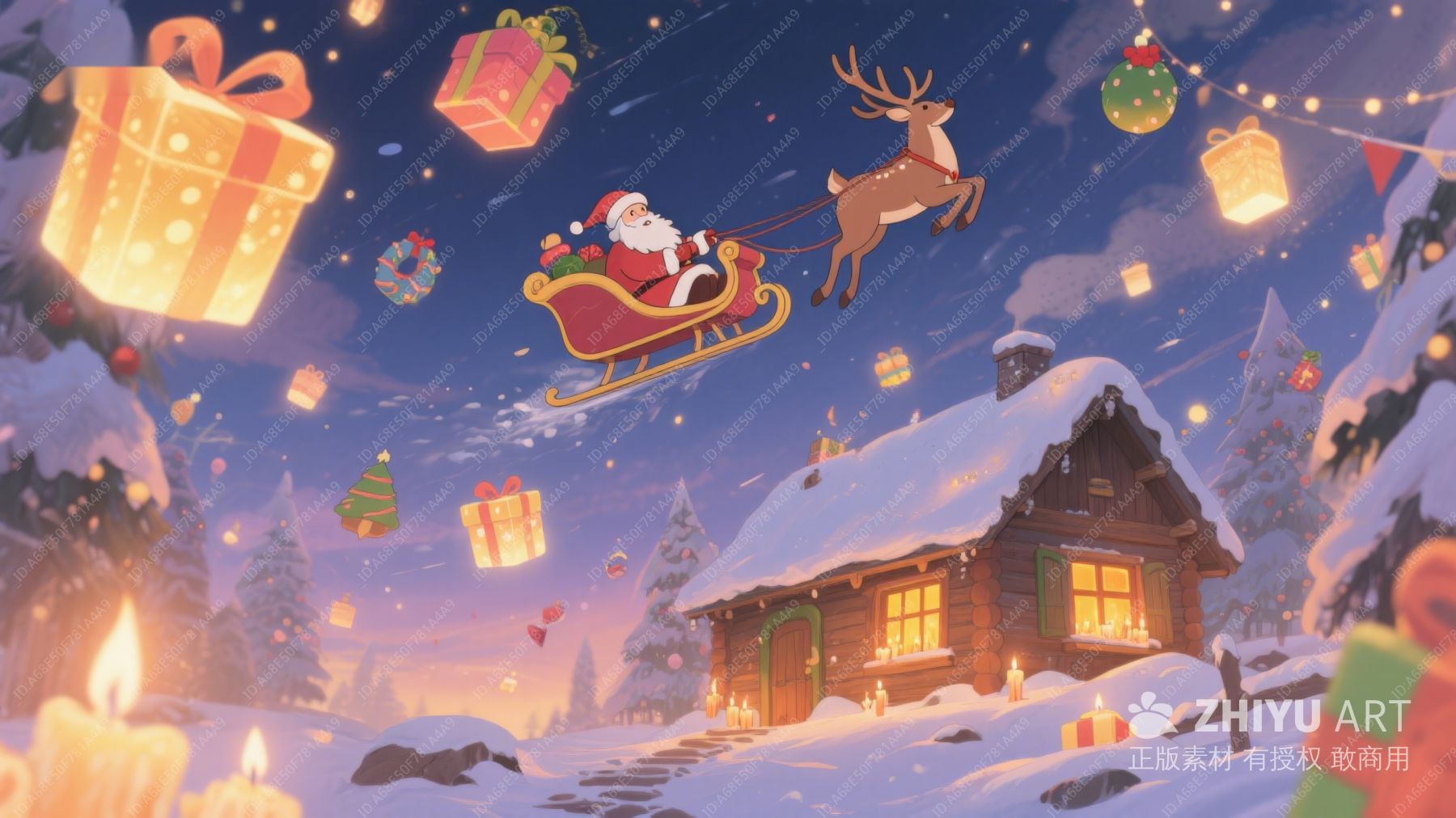 圣诞老人乘雪橇飞越雪夜小镇 200