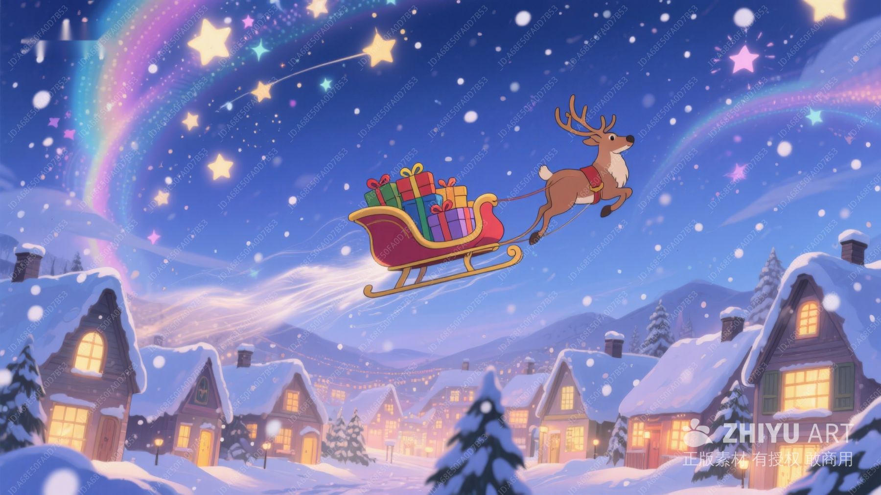 圣诞夜空中飞驰的驯鹿雪橇 228