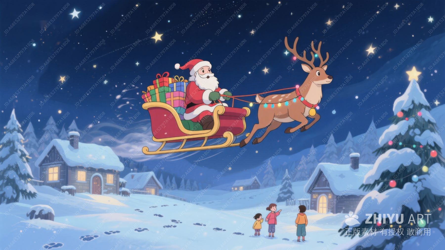 圣诞老人乘雪橇夜空飞行 173