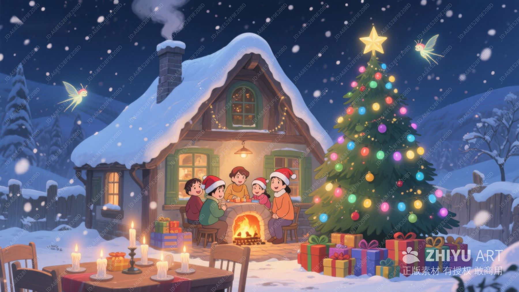 雪夜温馨圣诞树与家庭聚会 409