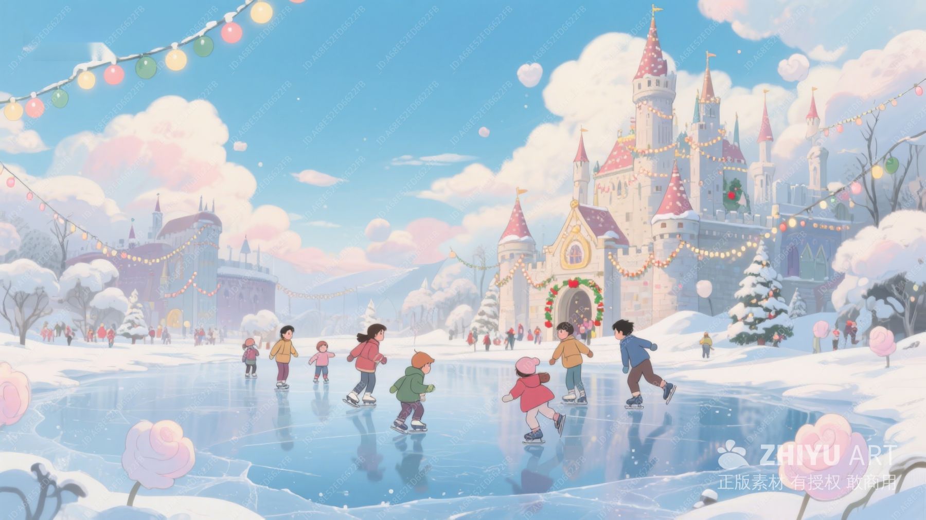 冬日城堡前的滑冰场景 8
