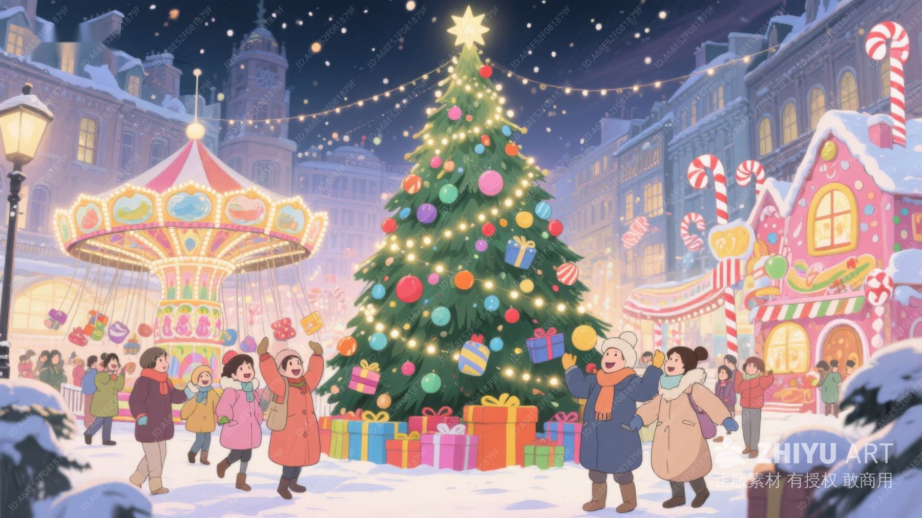 冬夜广场上的圣诞树与欢乐人群 41