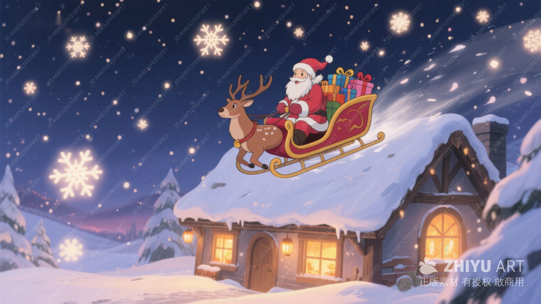 圣诞老人乘雪橇飞越雪夜小镇 193