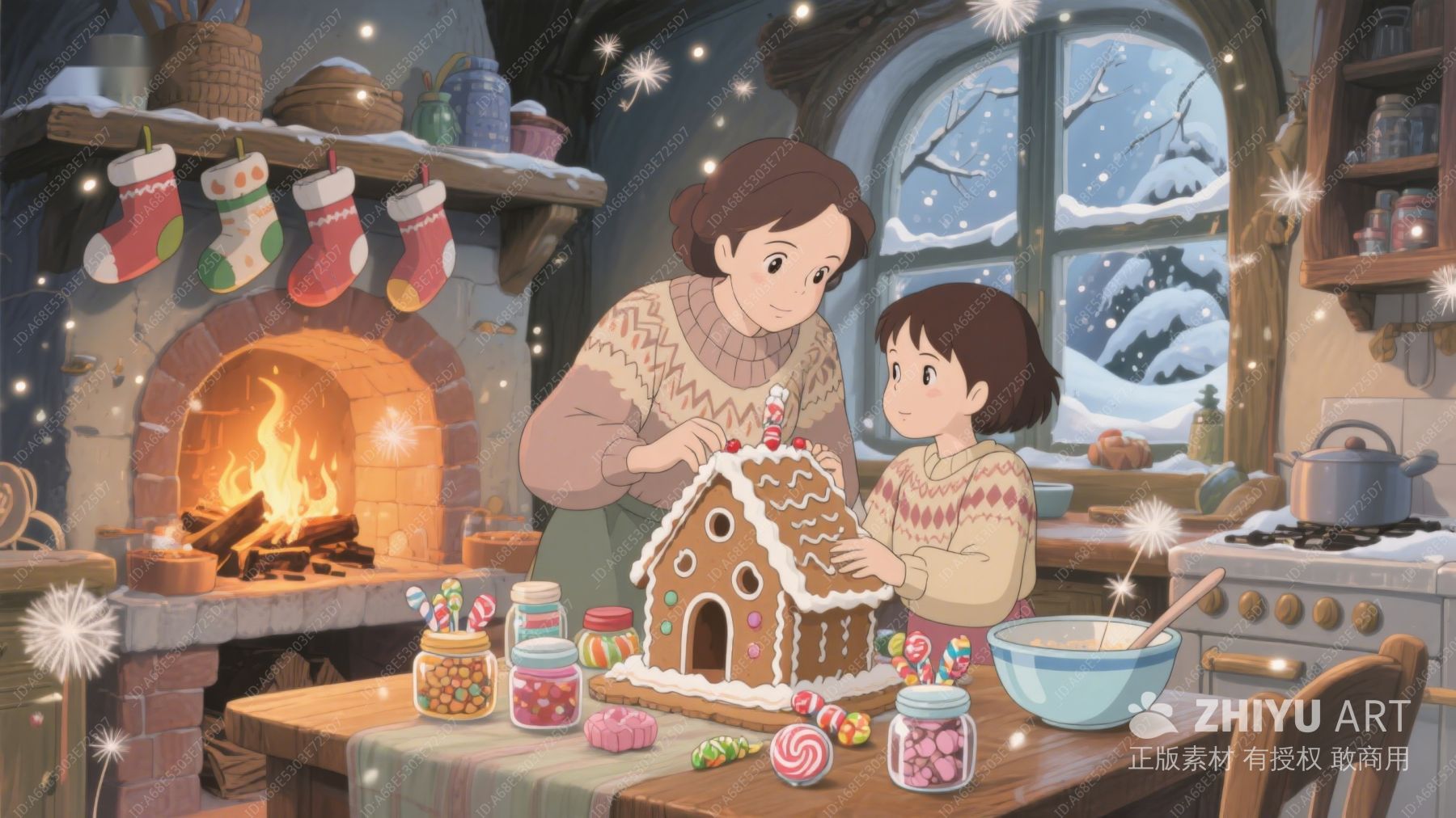 温馨厨房里的姜饼屋制作 247