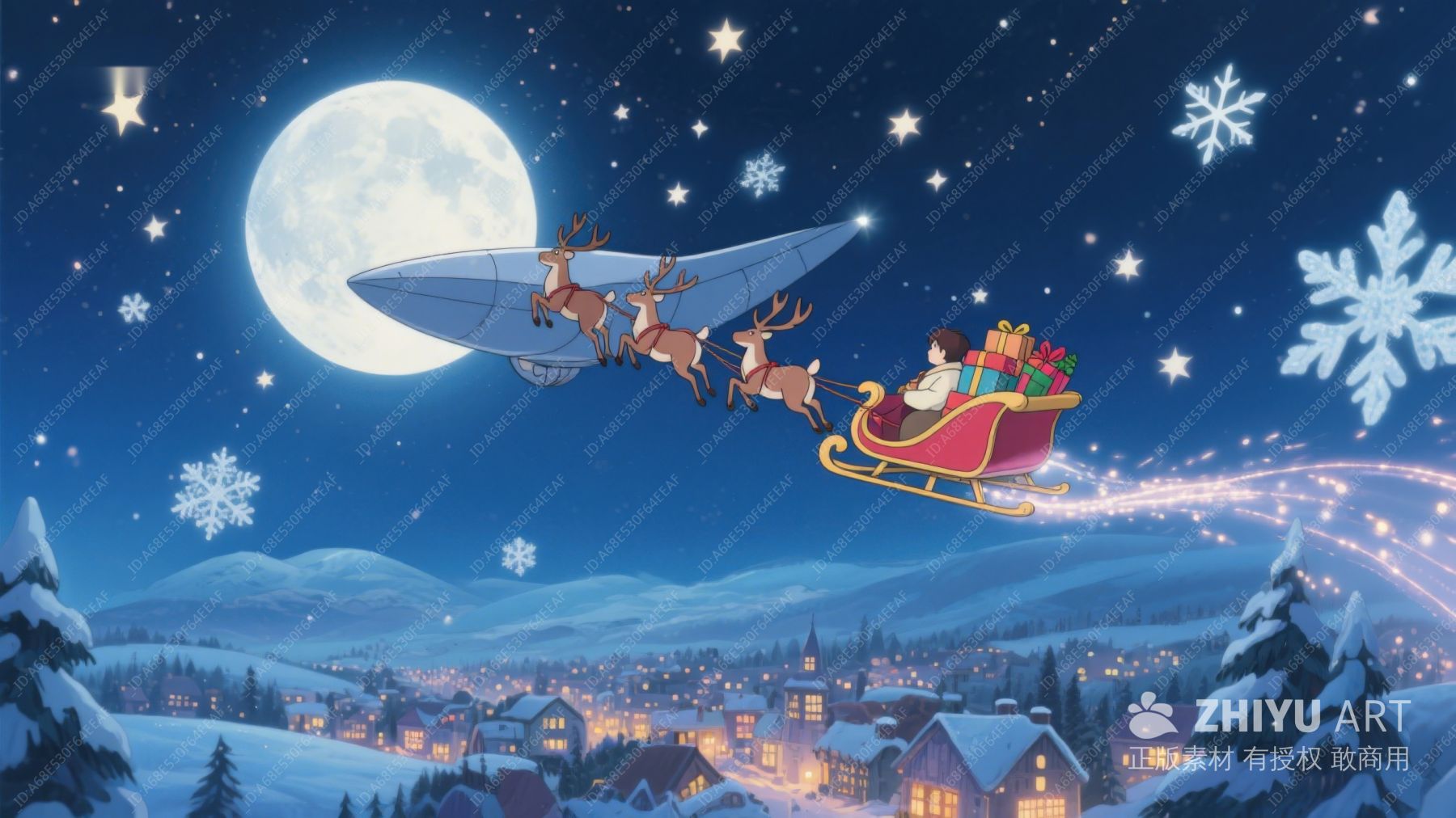 圣诞老人驾雪橇飞越雪夜小镇 185