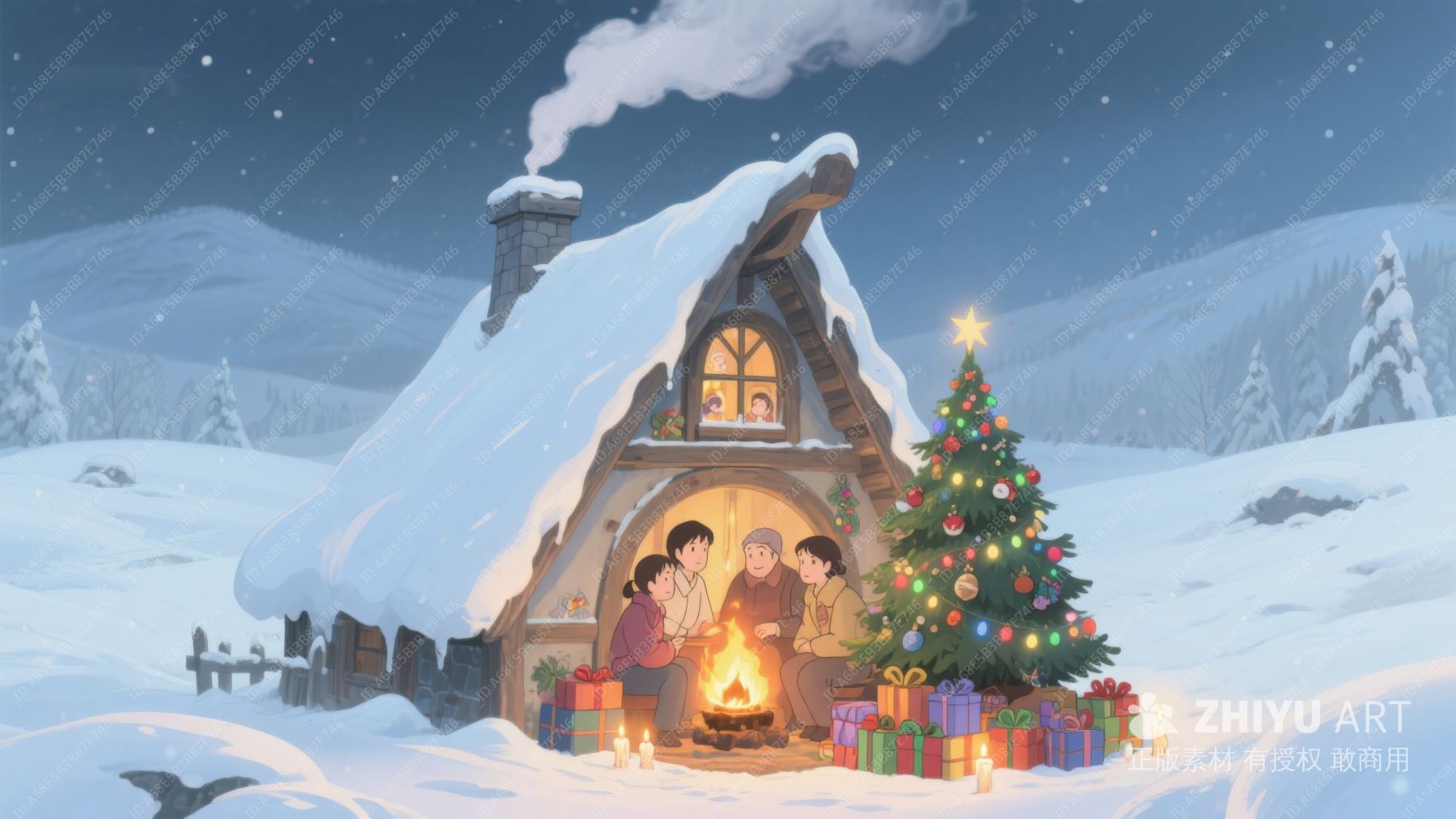 雪夜温馨小屋,家人围炉共庆圣诞 396