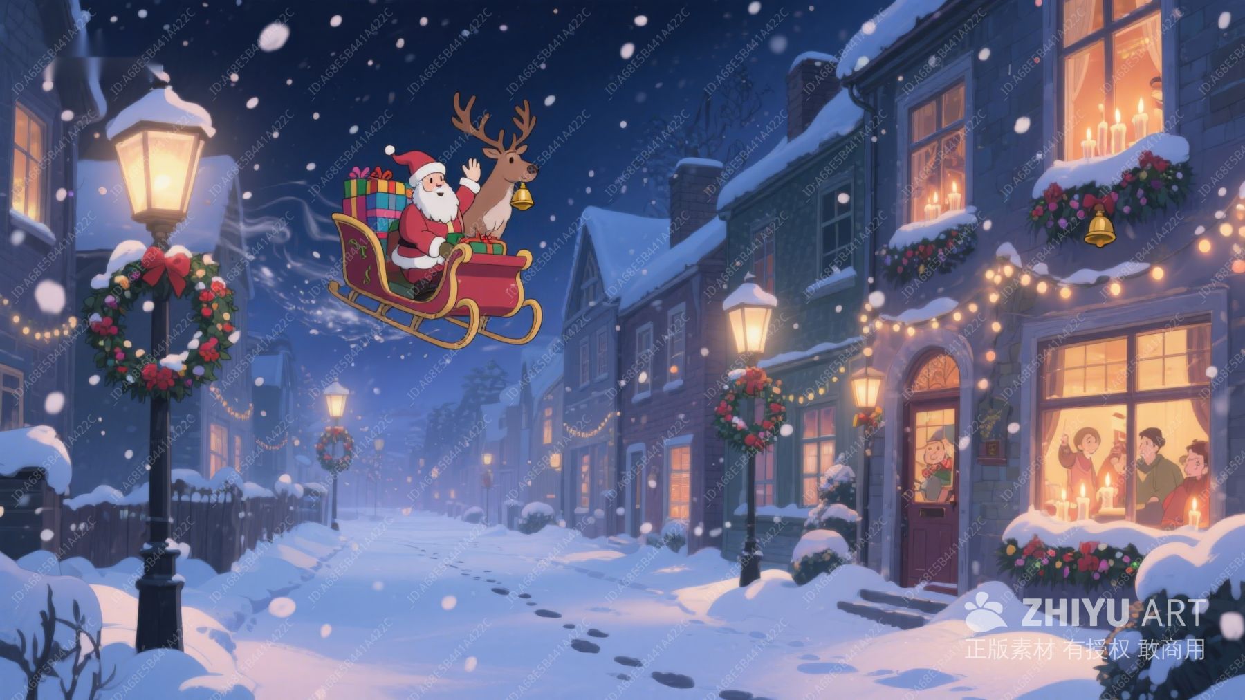 圣诞老人乘雪橇飞越雪夜小镇 200