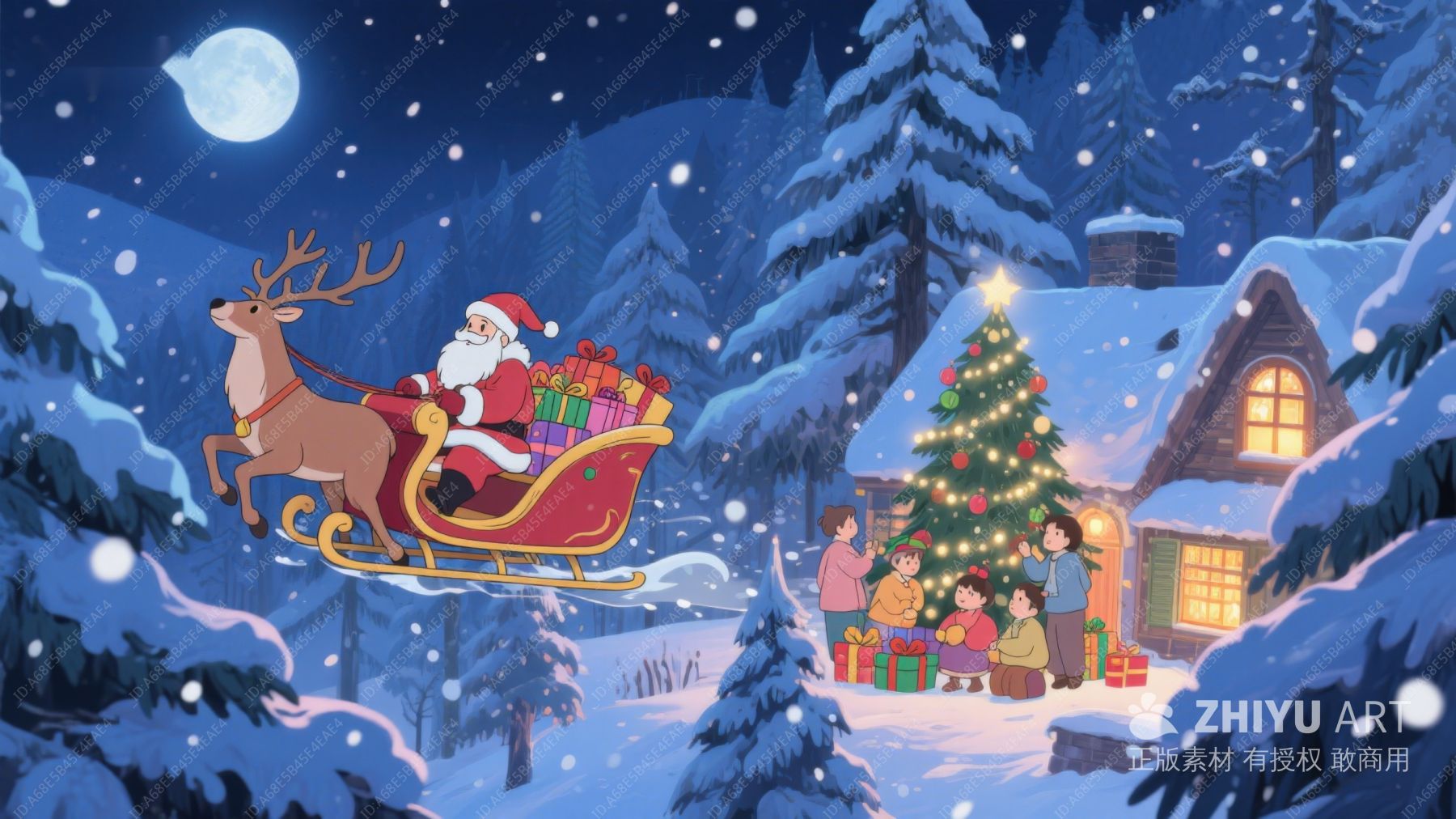 圣诞老人雪橇送礼,孩童欢庆节日 172