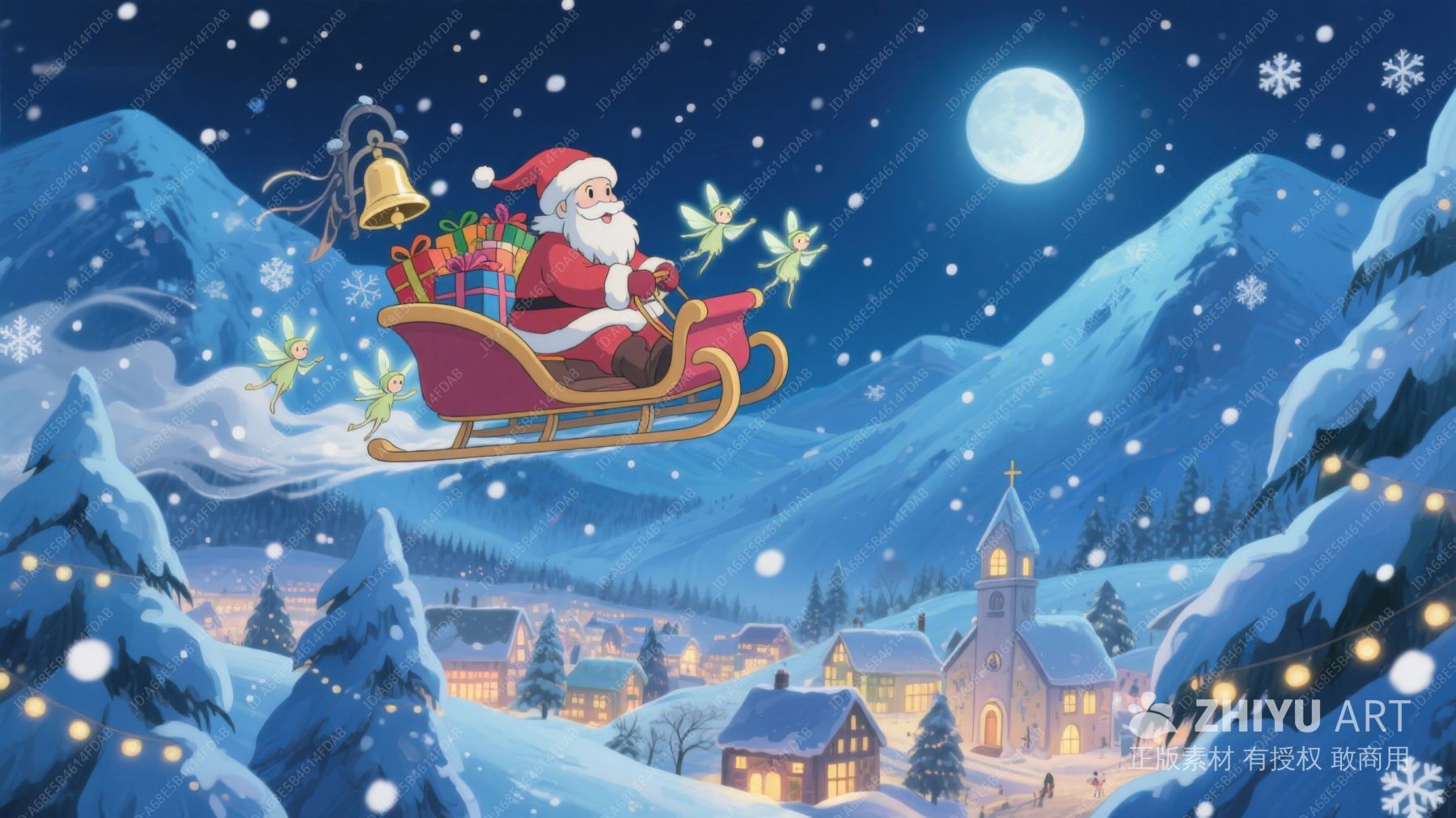 圣诞老人驾雪橇飞越雪夜小镇 166