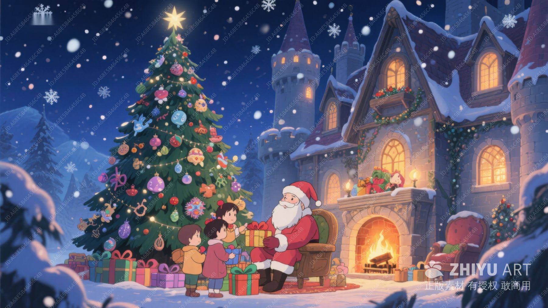 圣诞老人与孩子们在温暖的壁炉旁 214