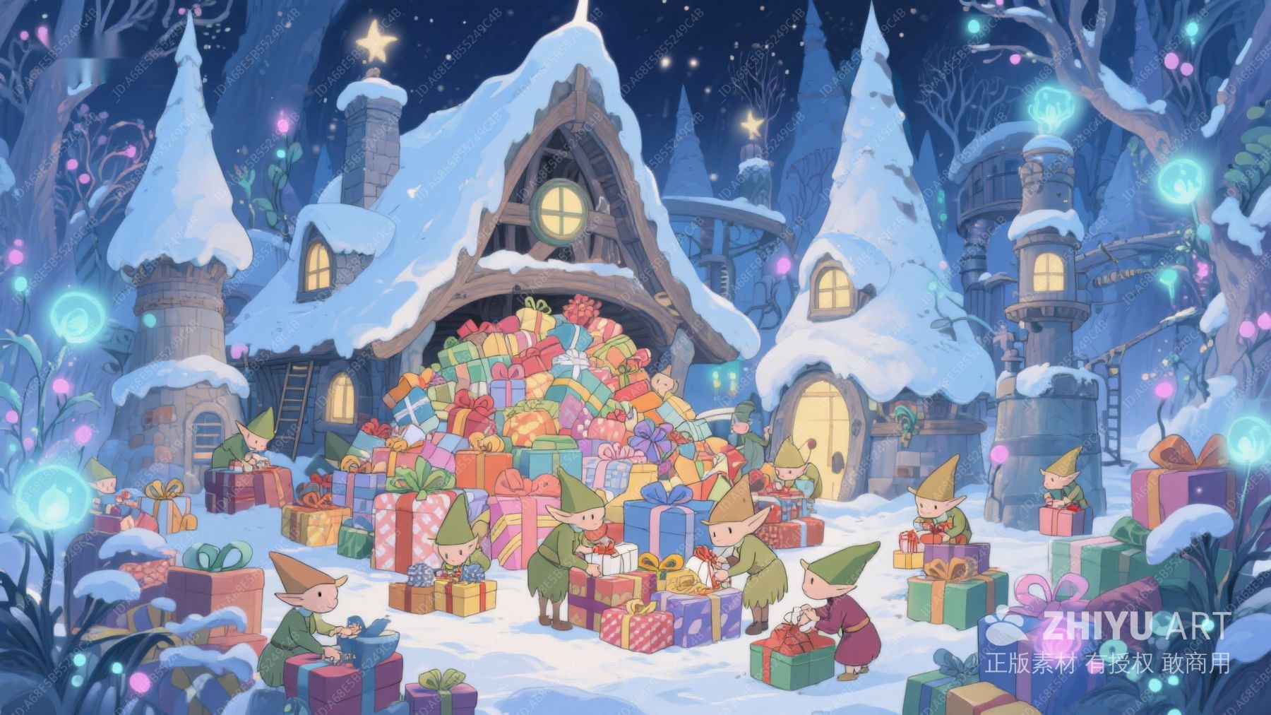 圣诞精灵在雪夜中忙碌包装礼物 155