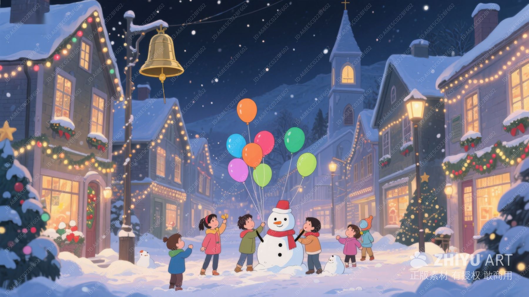 圣诞夜雪景与飞翔的驯鹿雪橇 232