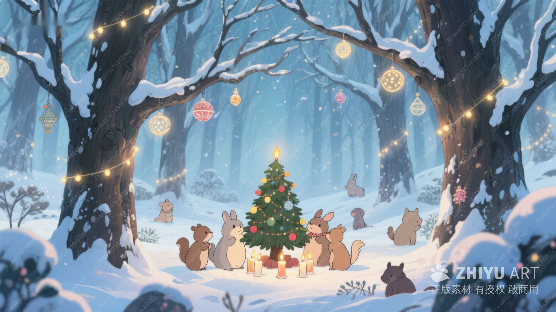 雪林中的圣诞树与小动物 364