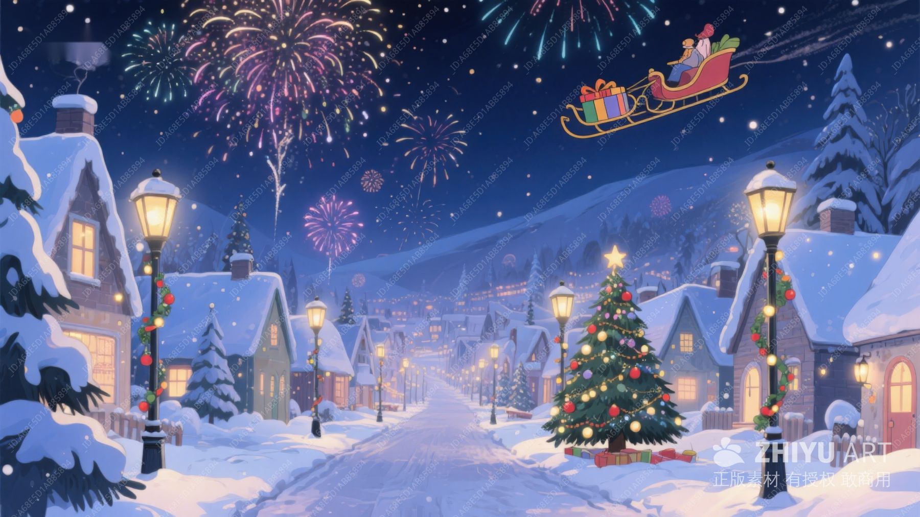 雪夜小镇的圣诞烟花 435