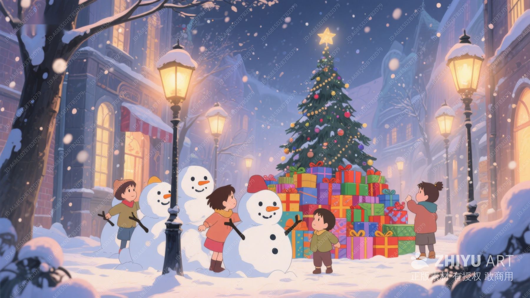 雪夜中的圣诞树与孩子们 492
