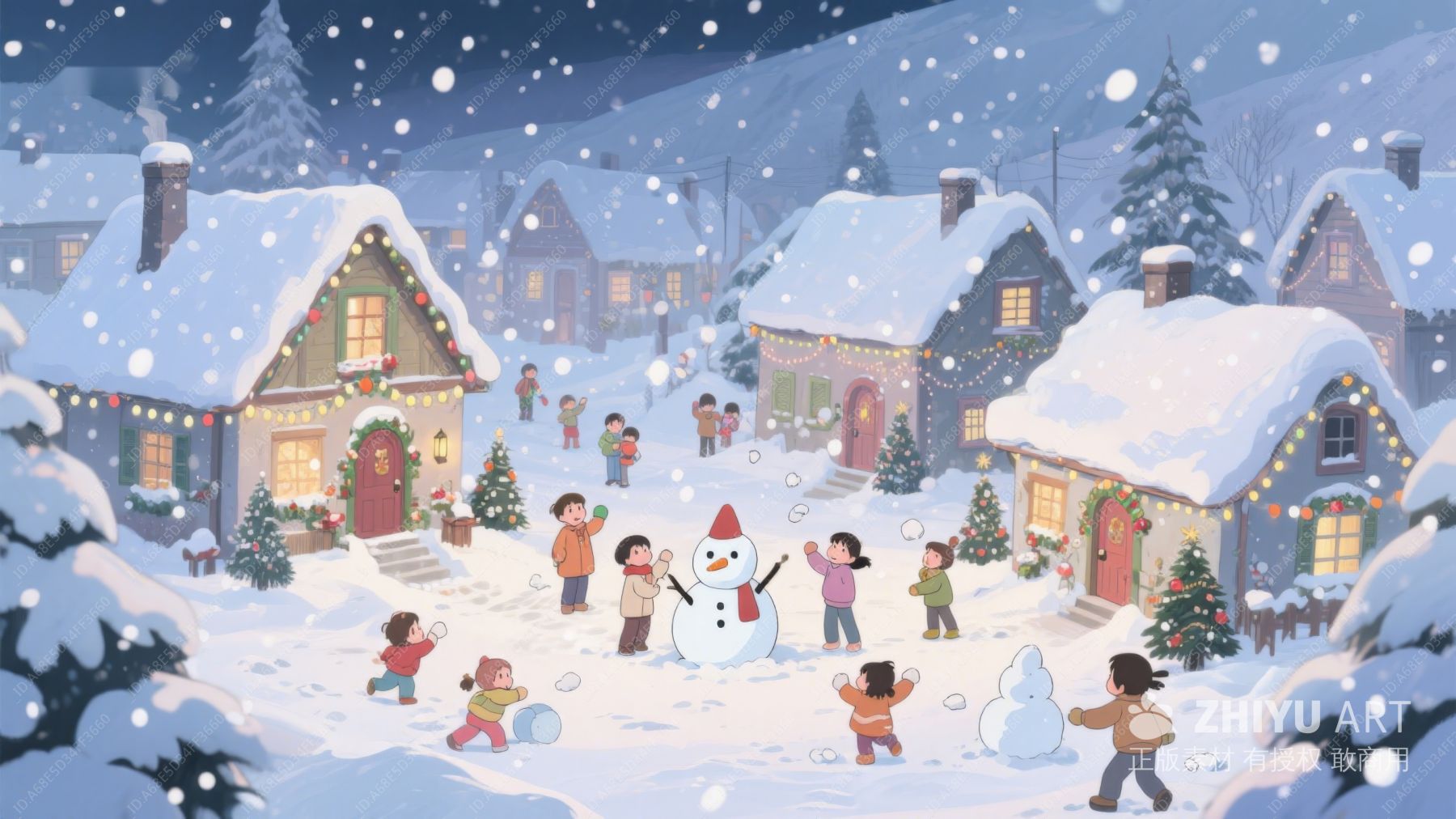 雪中欢聚:孩子们与雪人共度圣诞夜 490