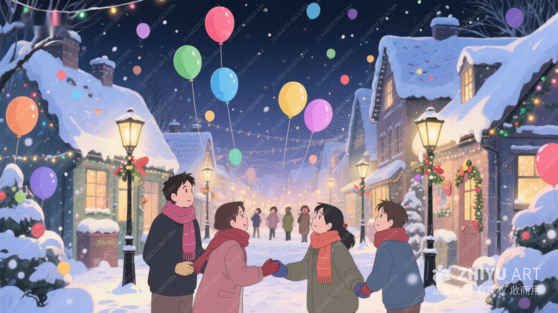 冬夜街景:孩子们与雪人共度欢乐时光 47