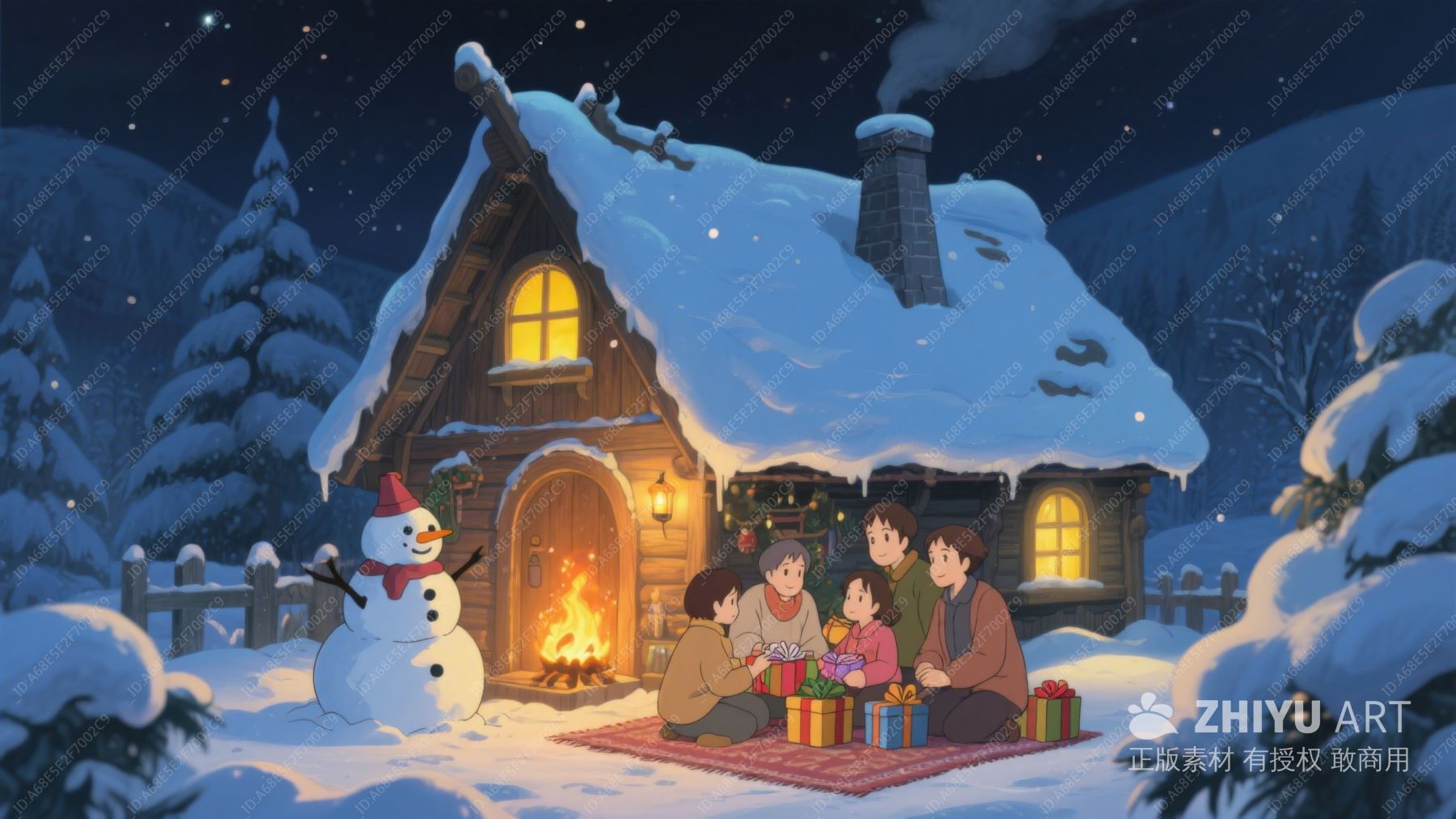 冬夜温馨小屋,家人围炉共庆圣诞 83