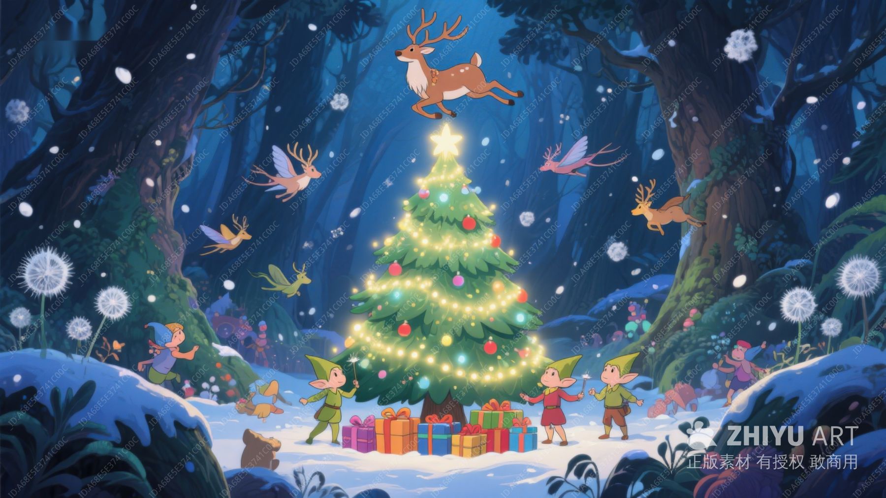 森林中的圣诞树与欢乐小精灵 172