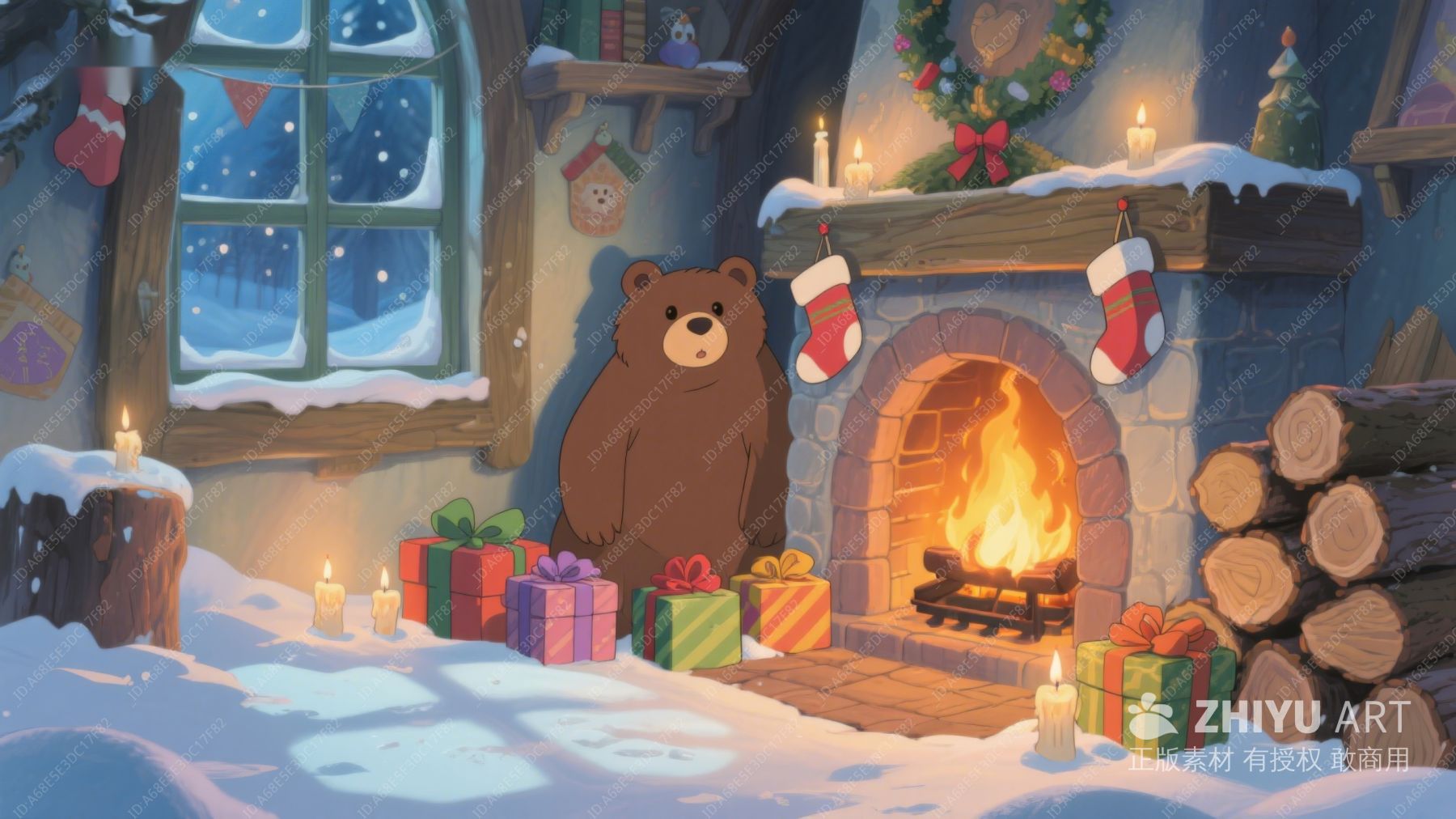 温馨圣诞夜,熊与壁炉 320