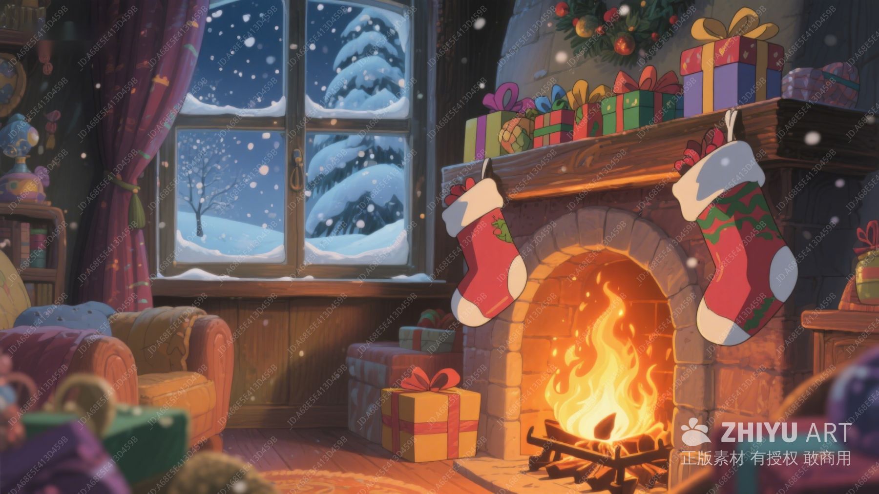 温馨圣诞夜,壁炉旁的礼物与袜子 279