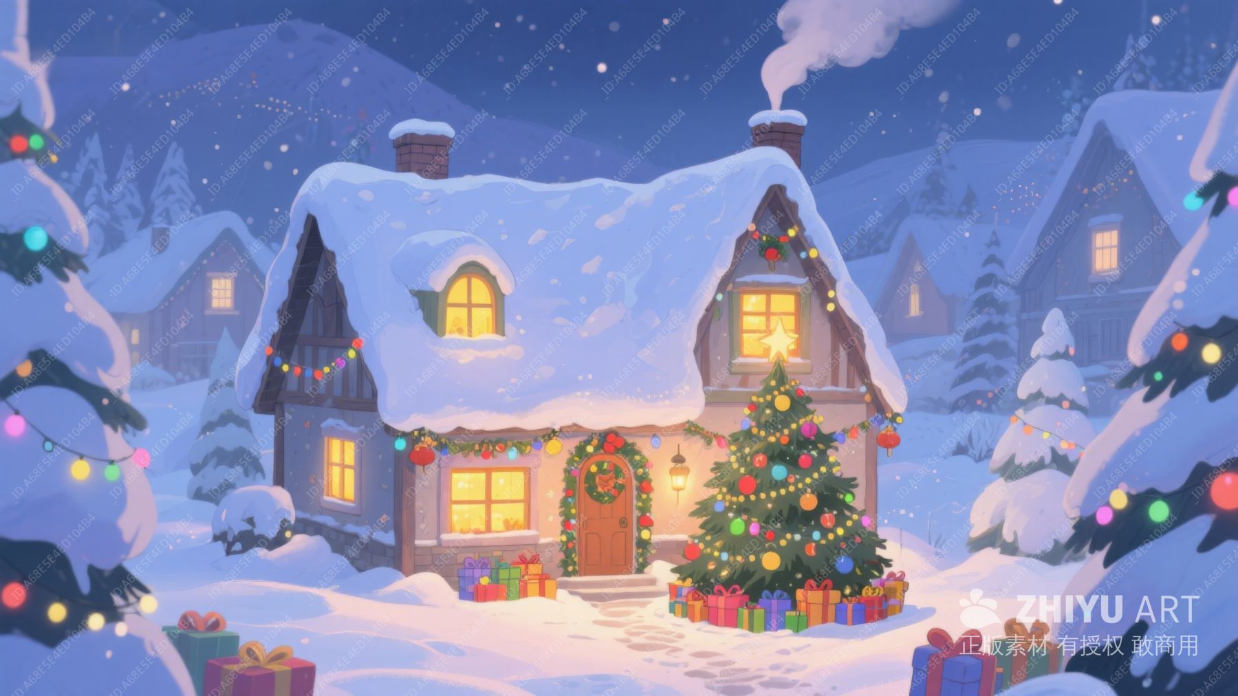 雪夜中的温馨圣诞小屋 490