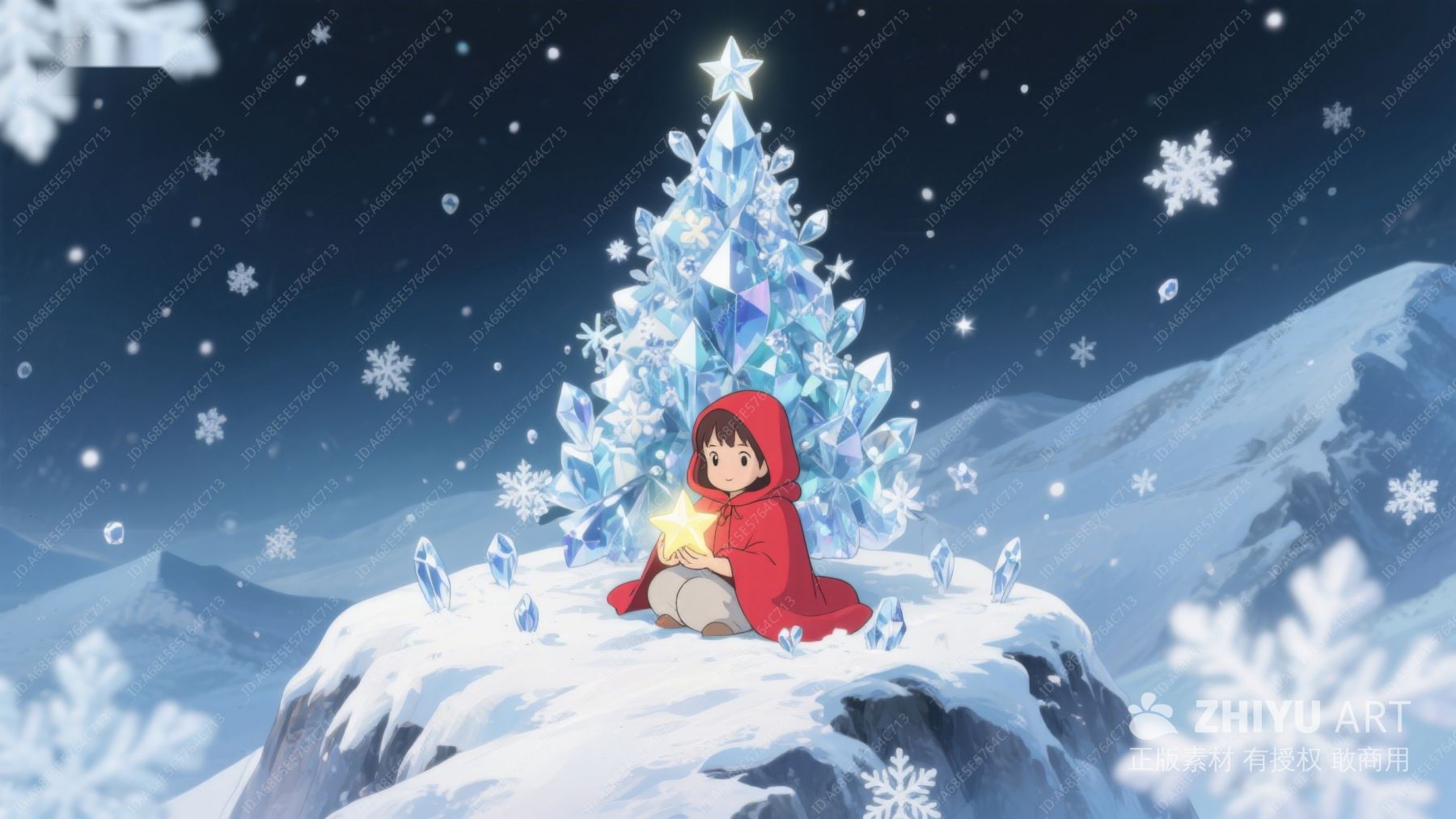 雪夜中的小女孩与水晶圣诞树 514