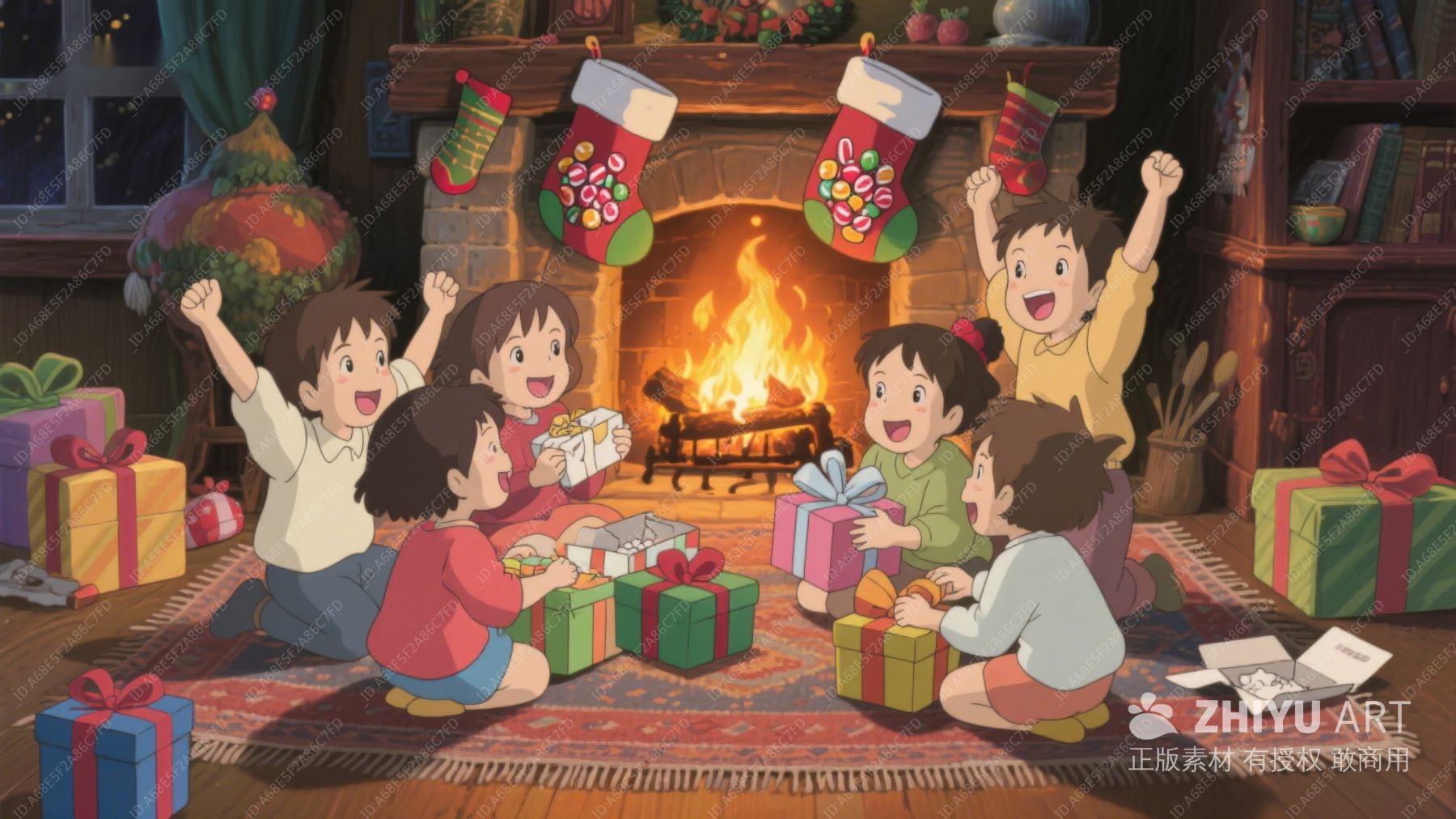 温馨圣诞夜,孩子们围炉分享礼物 277