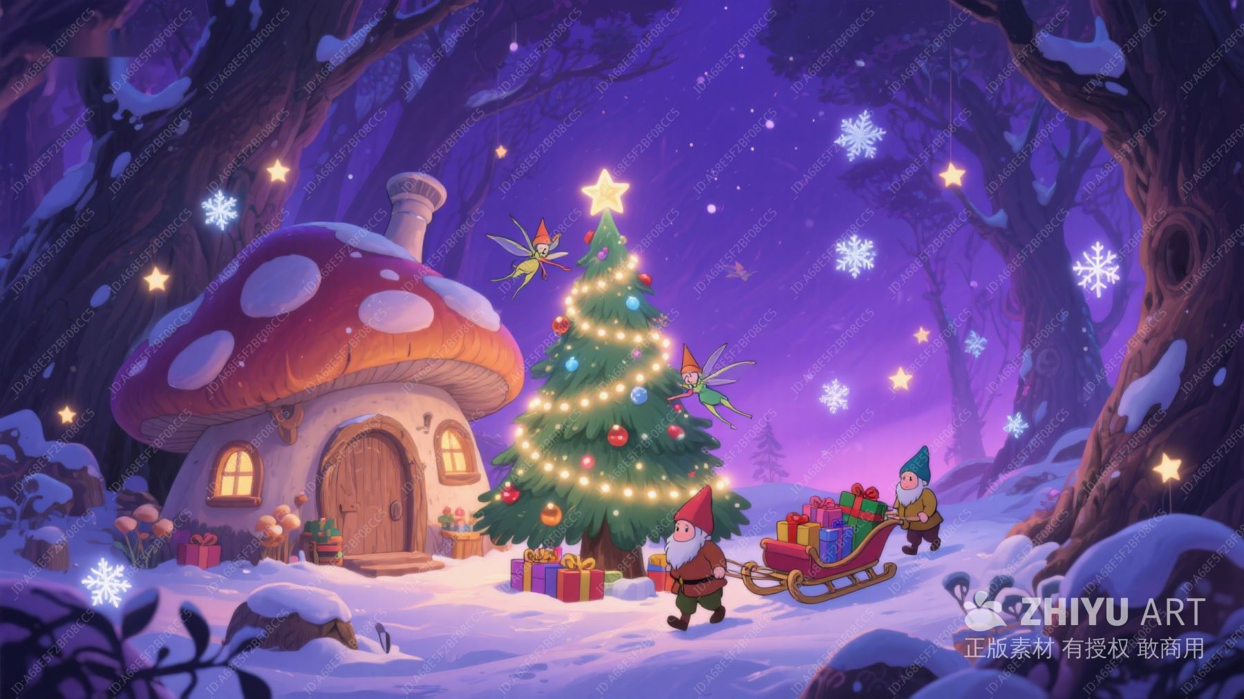 梦幻圣诞夜:雪地小屋与圣诞树 148