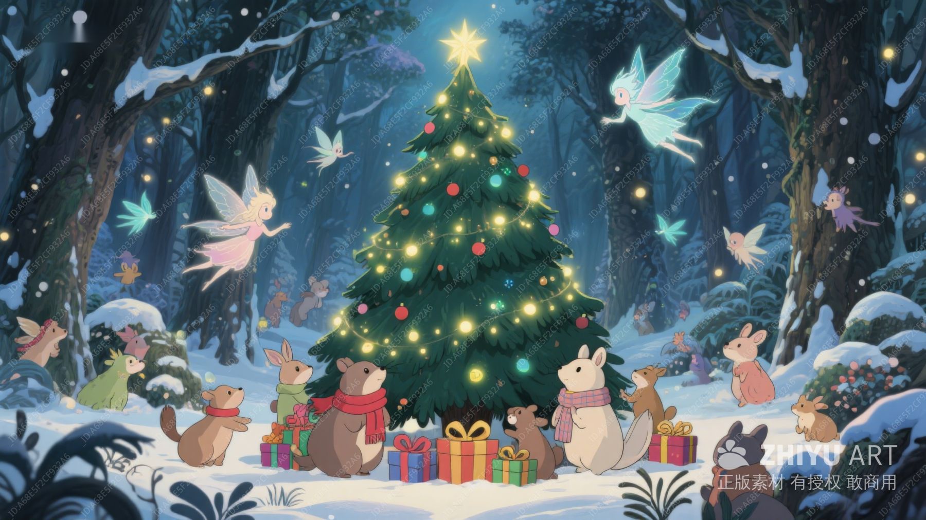 森林中的圣诞树与动物欢聚 166