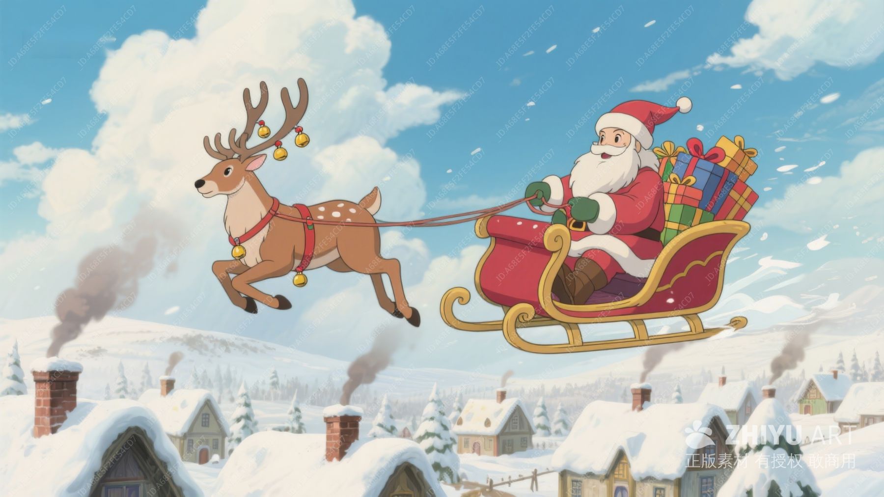 圣诞老人驾驯鹿雪橇飞越雪村 190