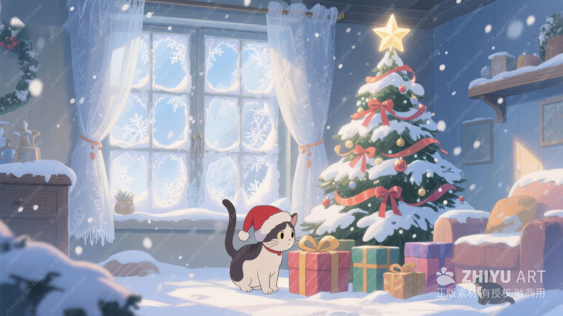 圣诞夜猫咪温馨场景 240