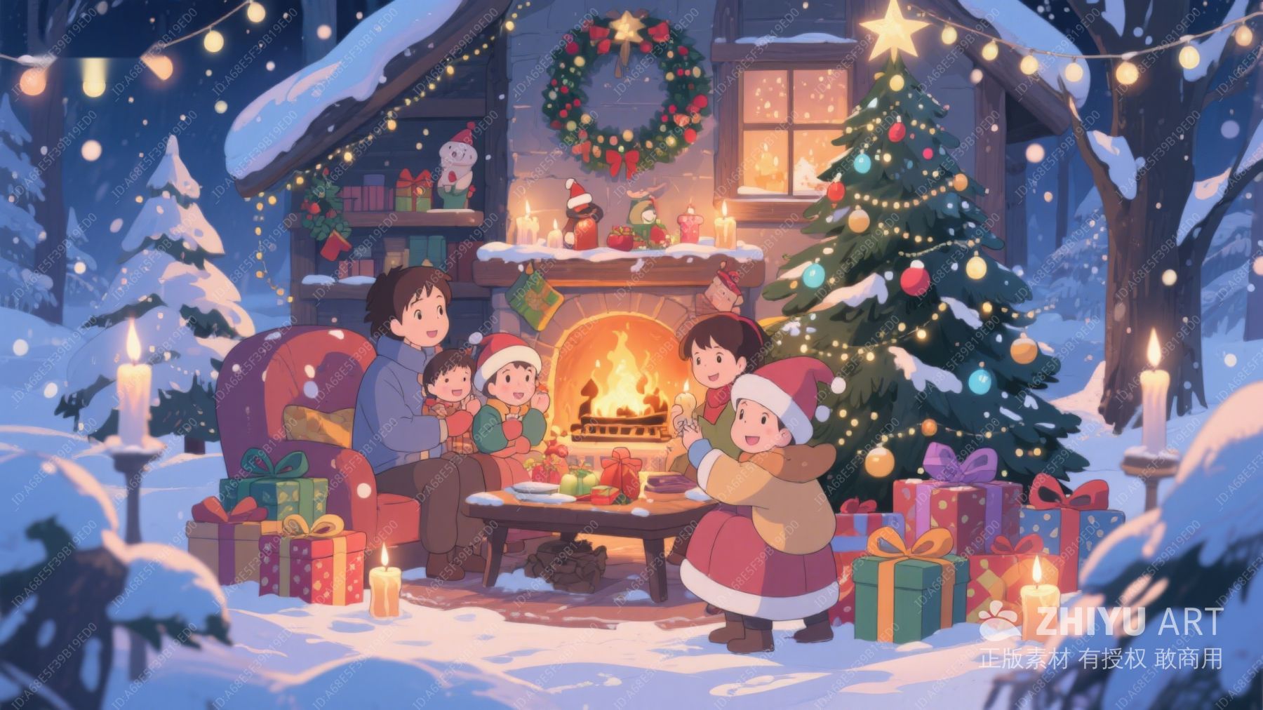 圣诞夜温馨场景:家人围炉共度佳节 228