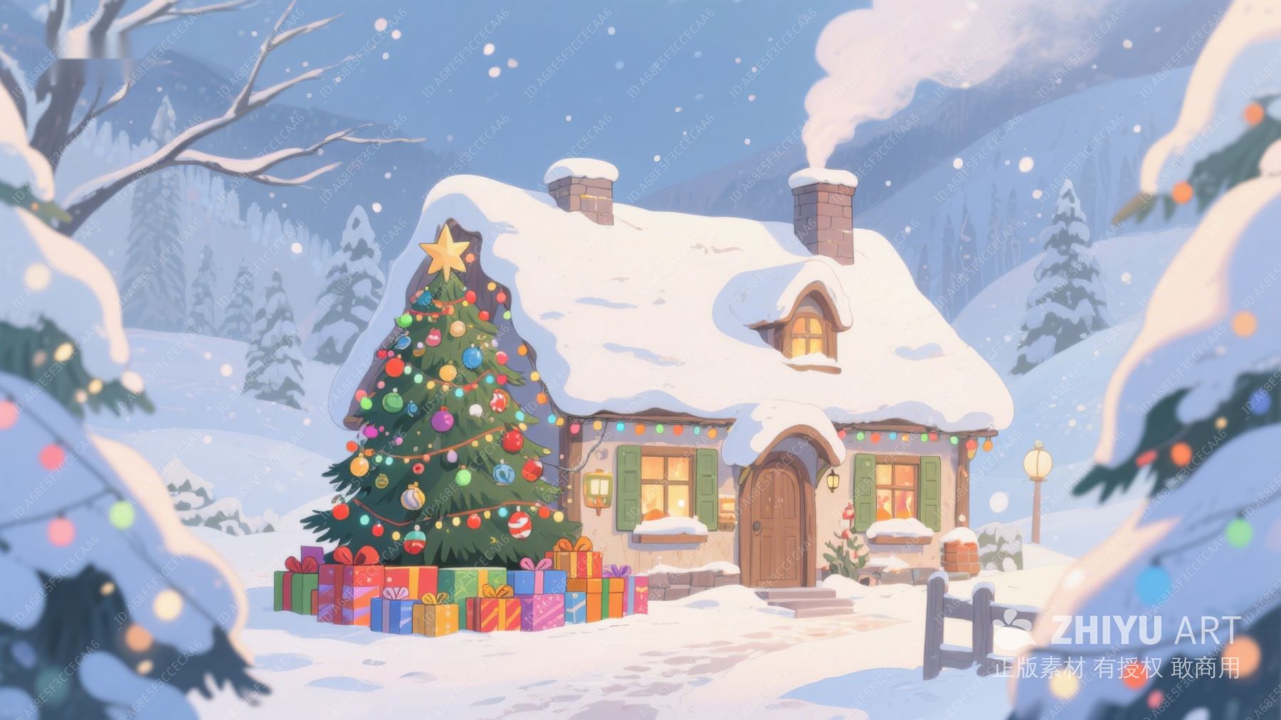 雪夜温馨小屋,家人围炉共度圣诞 419