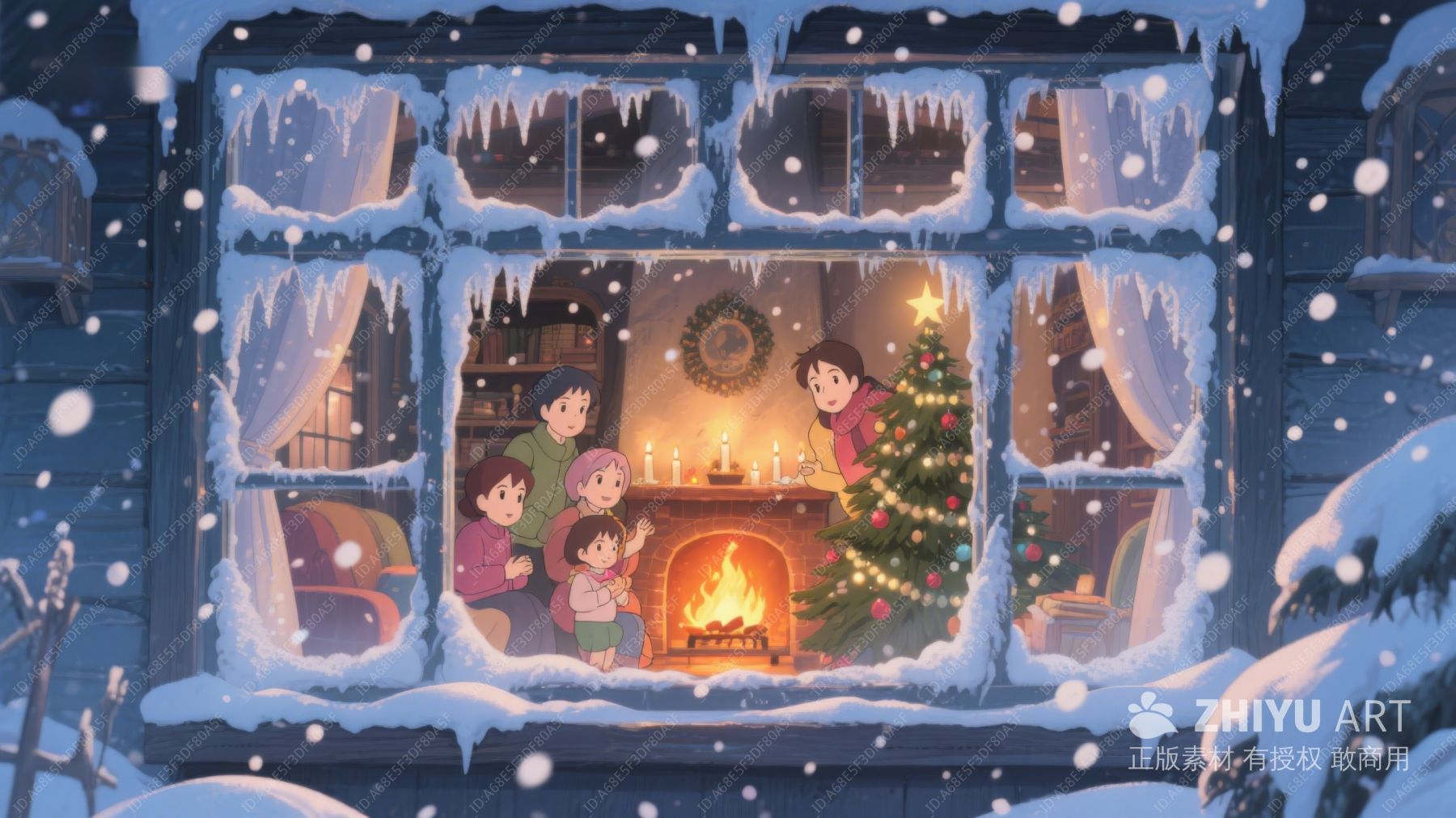 雪夜温馨圣诞夜,家庭欢聚窗前 415