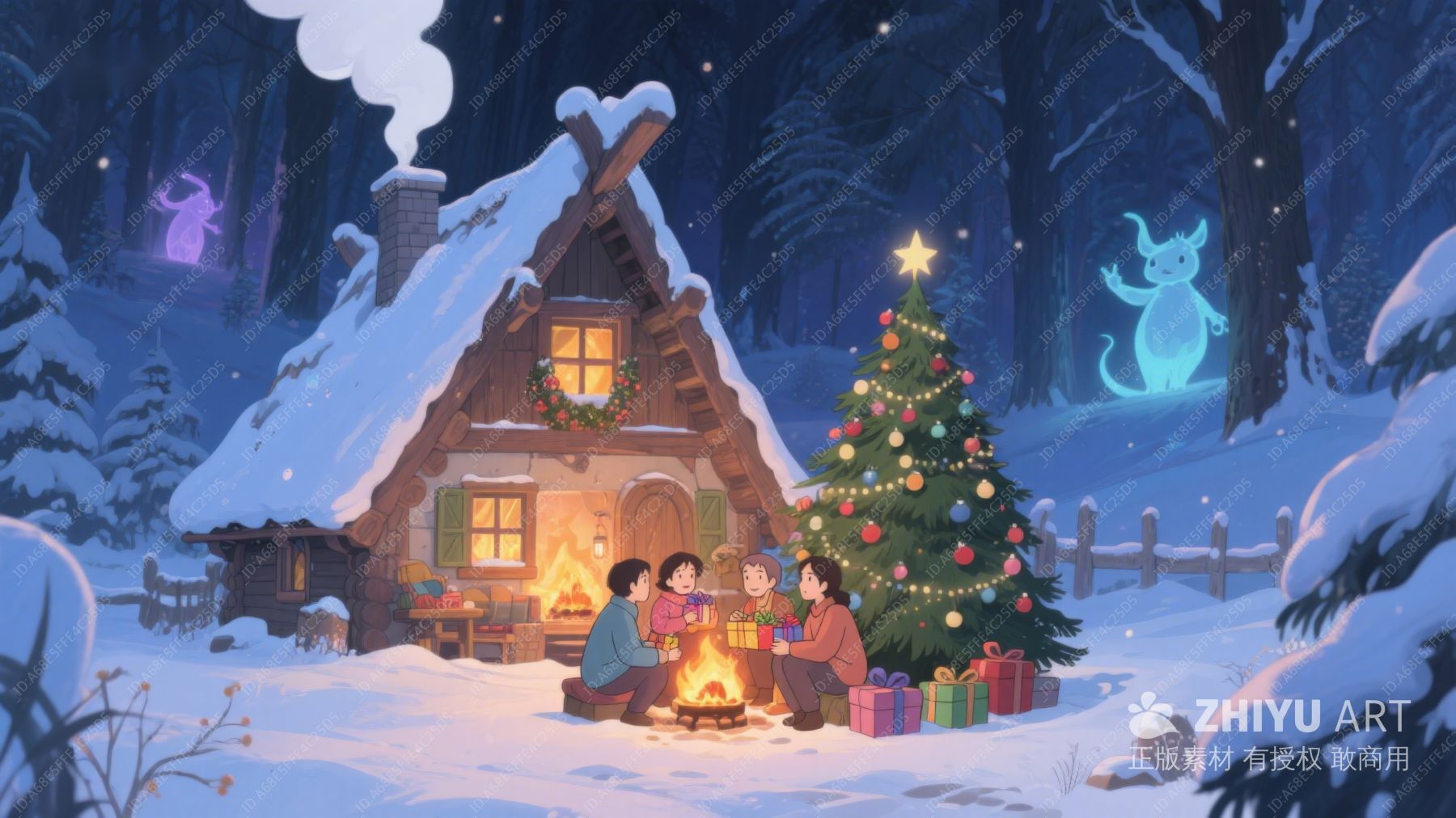 冬夜林中小屋前的温馨圣诞聚会 44