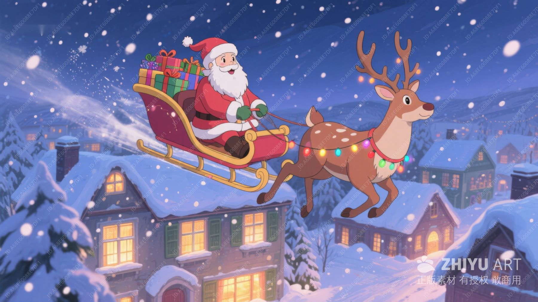 圣诞老人乘雪橇飞越雪夜小镇 200