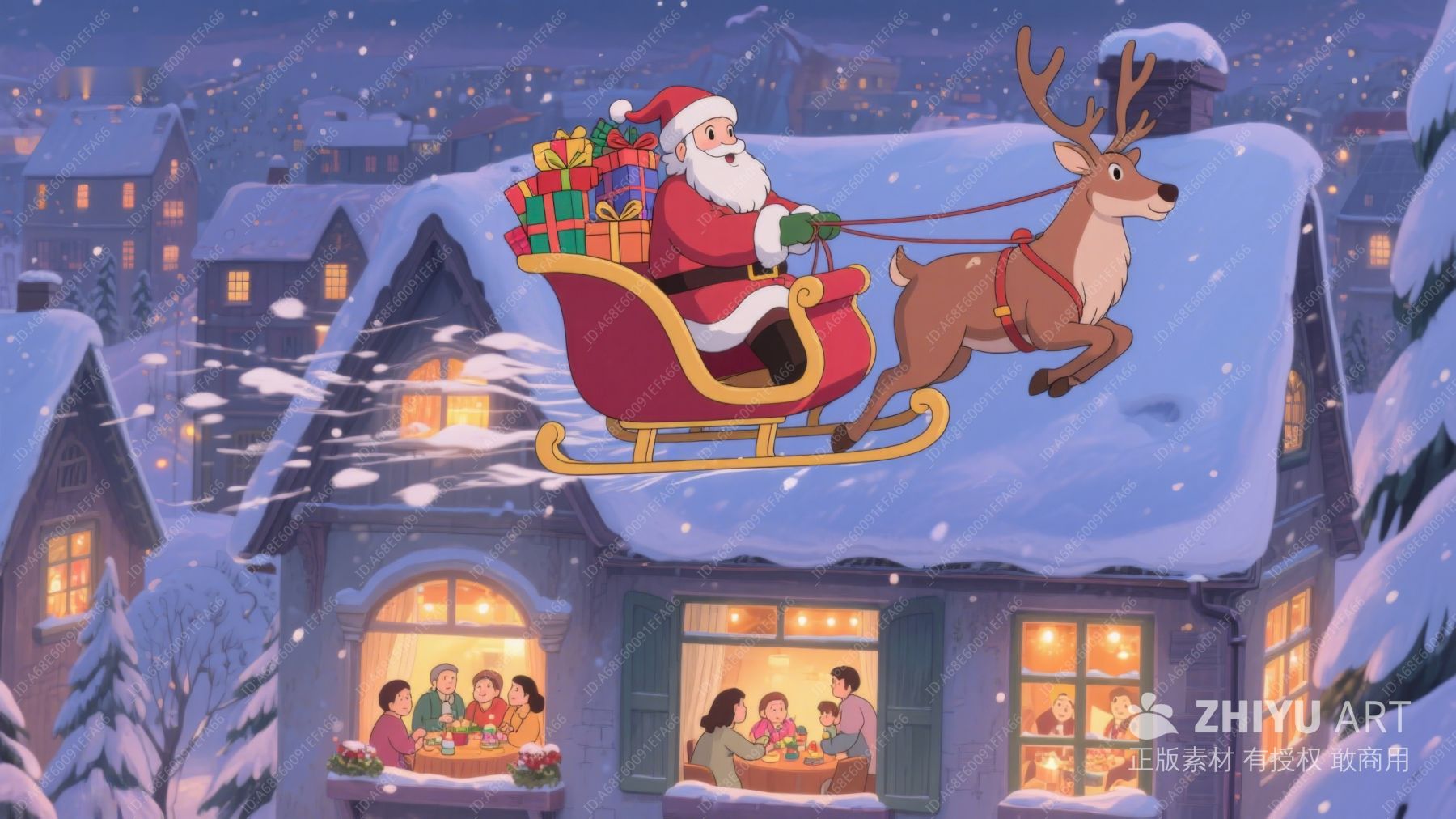 圣诞老人驾驯鹿雪橇飞越雪村 190
