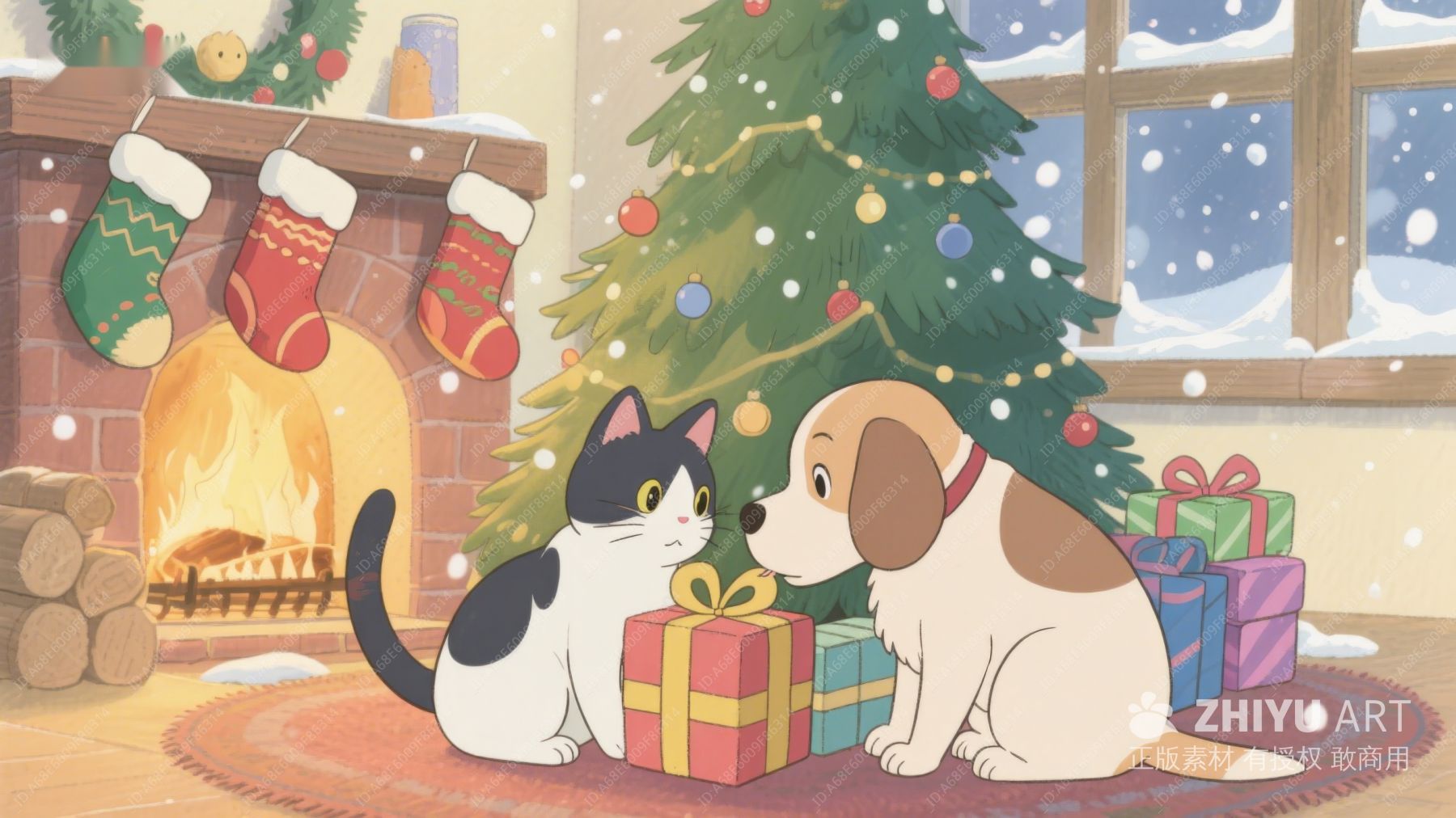 温馨圣诞夜,猫咪共度欢乐时光 302