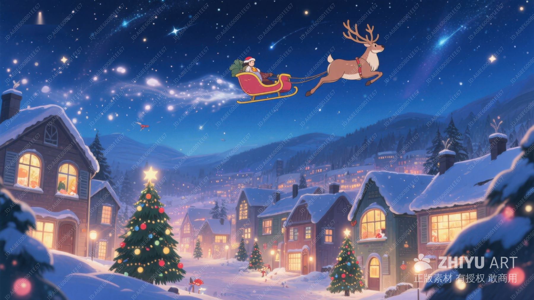 圣诞夜空中飞驰的驯鹿雪橇 228