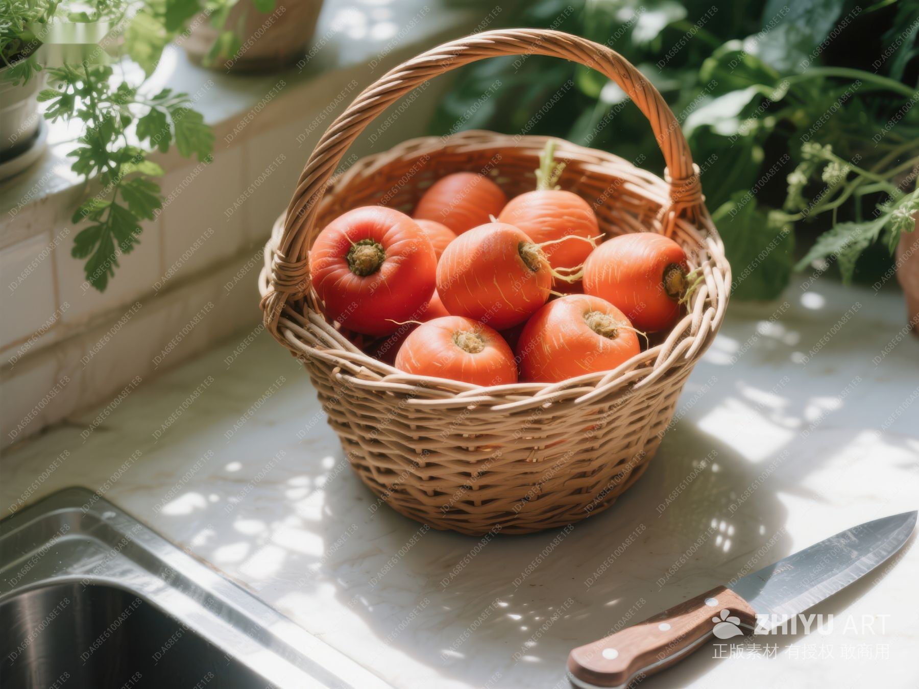 篮子里的番茄与厨房场景 232