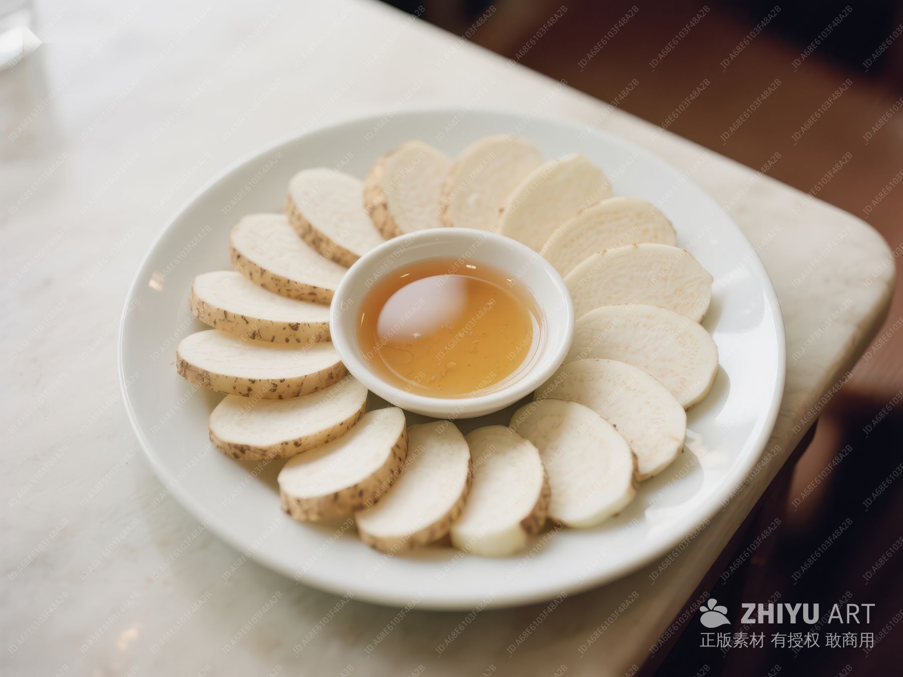 新鲜芋头片配酱油碟 544