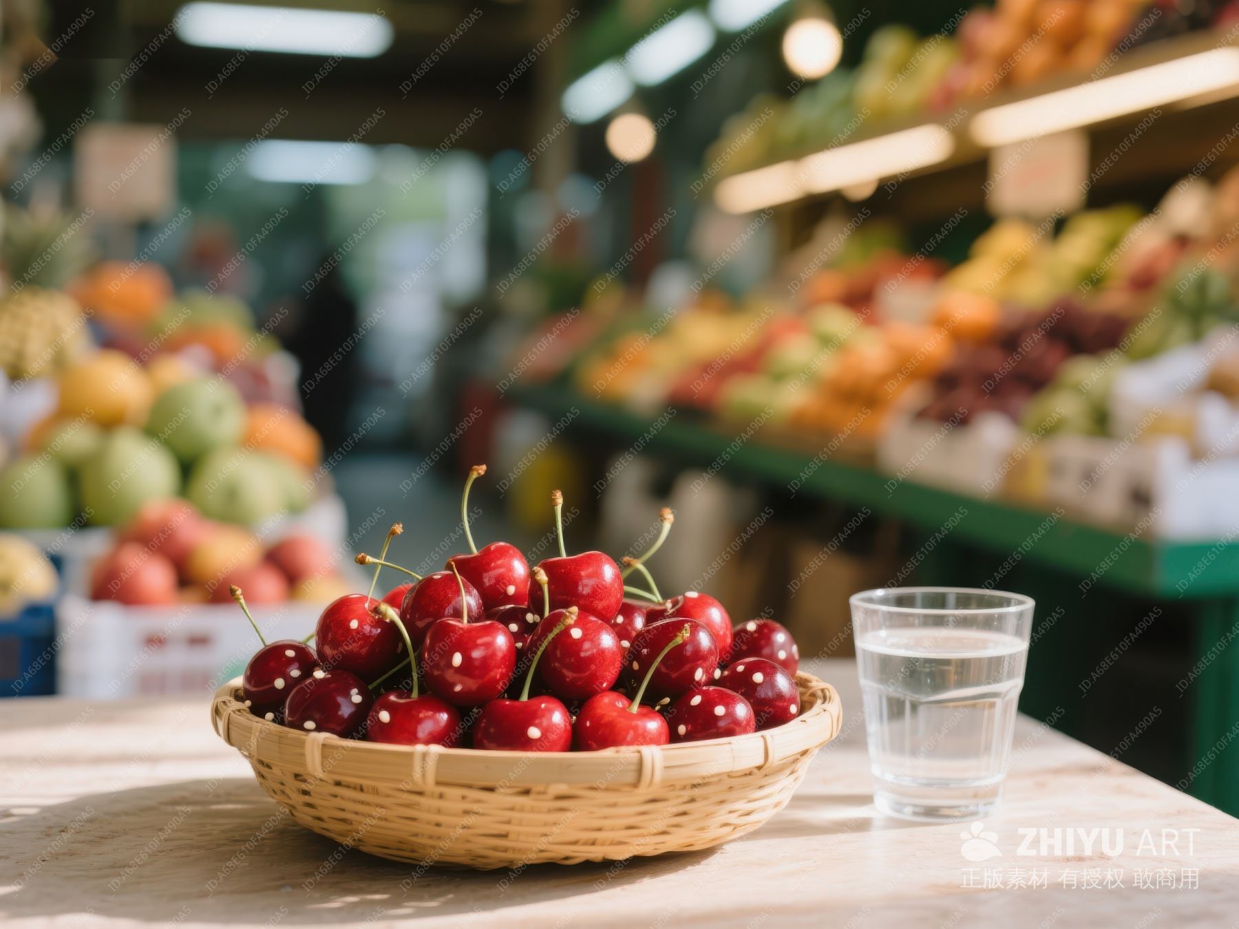 樱桃与清水:市场一角的清新景象 564