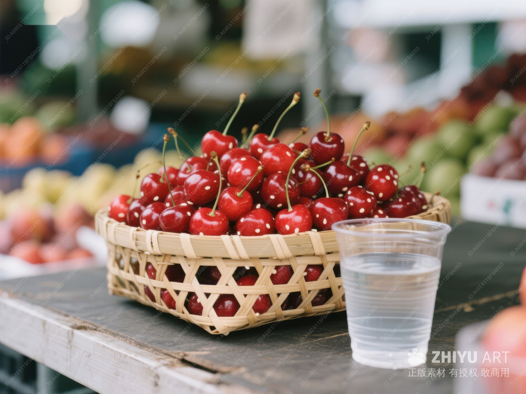 樱桃与清水:市场一角的清新景象 564